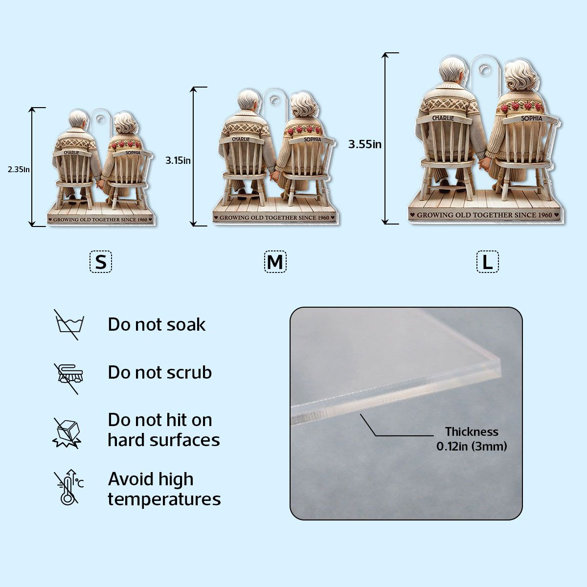 Old Couple Holding Hands Sitting Together Personalized Keychain, Heartfelt Gift For Couple, For Him, For Her, Husband, Wife