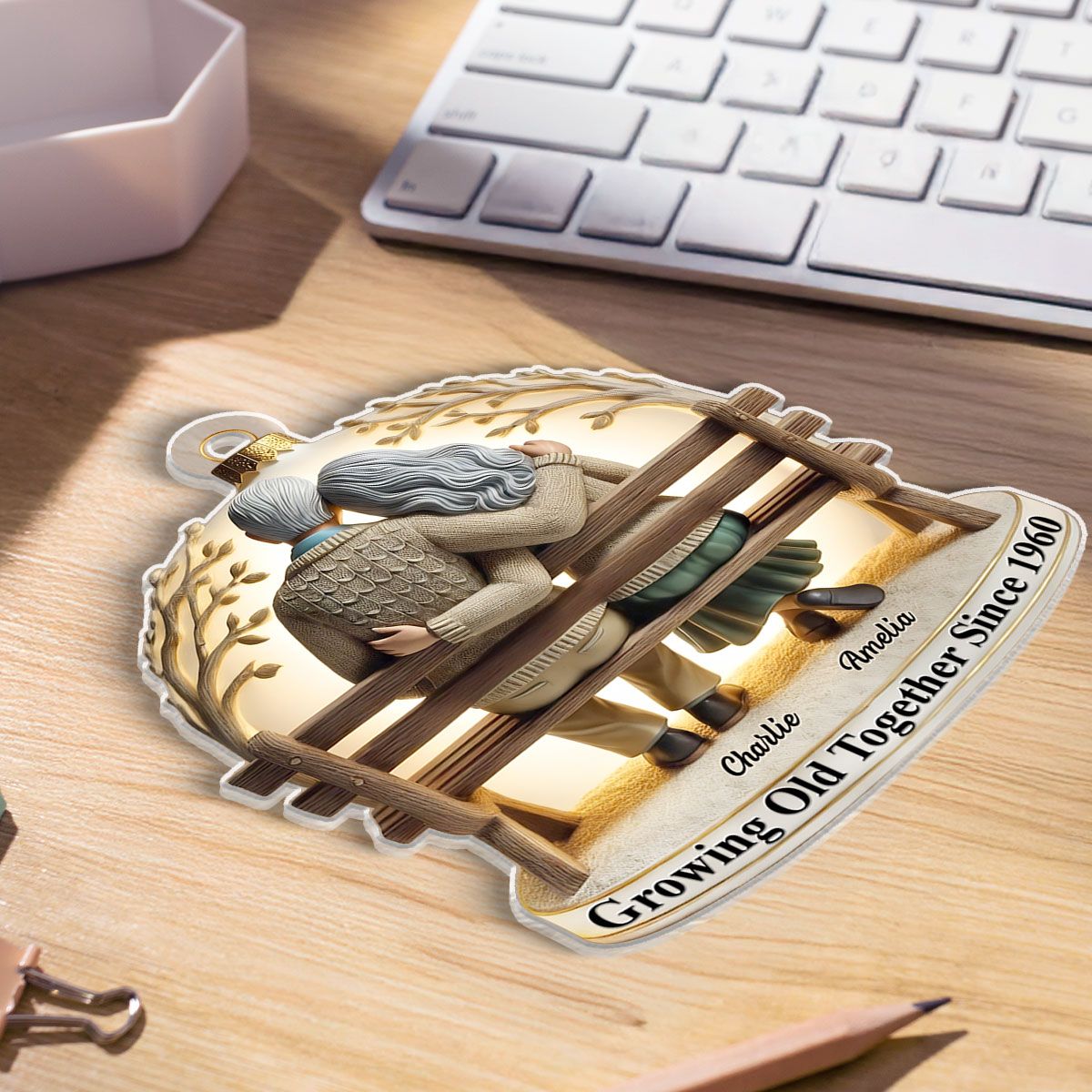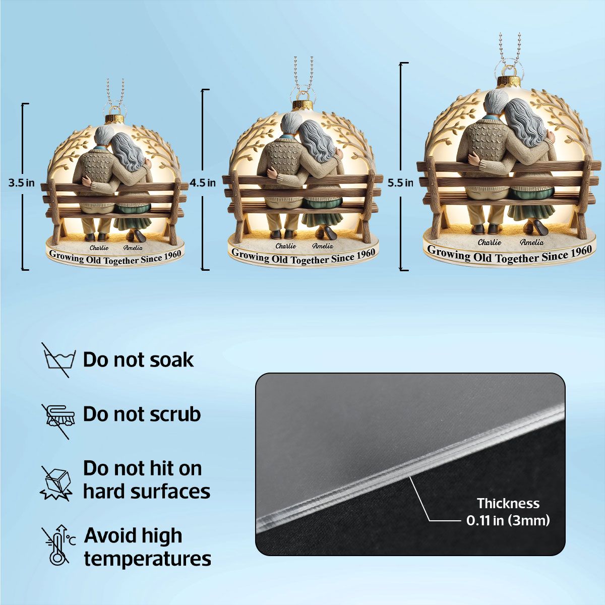 Old Couple Sitting On Bench Together Personalized Car Hanger Ornament, Heartfelt Gift For Couple, For Him, For Her, Husband, Wife