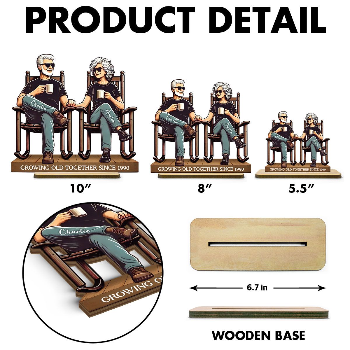 Old Couple Sitting On Front Porch Personalized Standing Wooden Plaque
