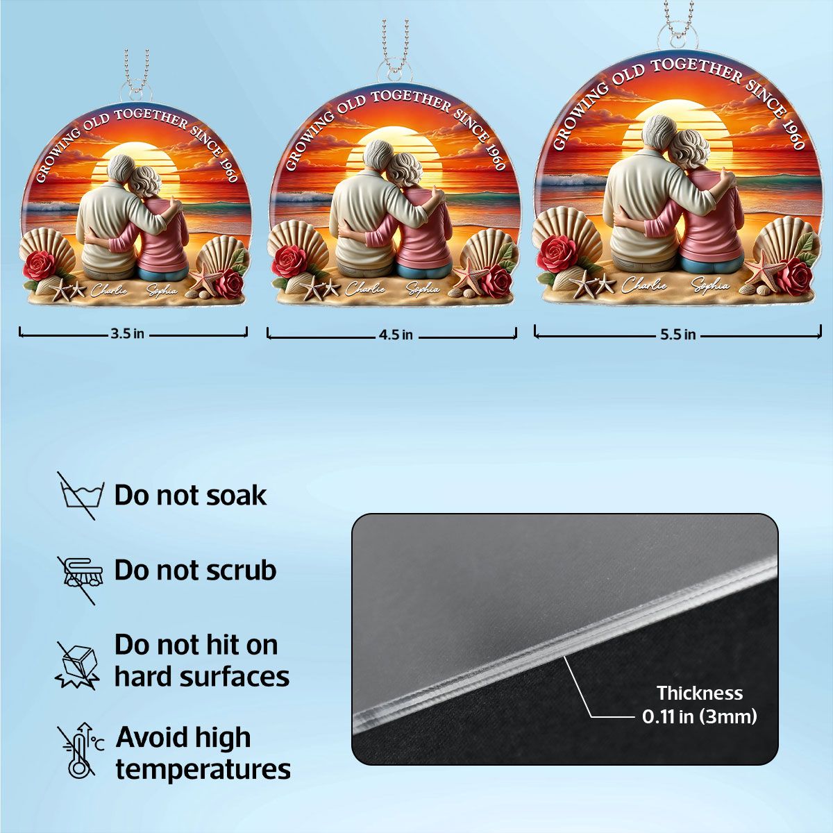 Old Couple Sitting Sunset Beach Landscape Personalized Car Hanger Ornament, Heartfelt Gift For Couple, For Him, For Her, Husband, Wife