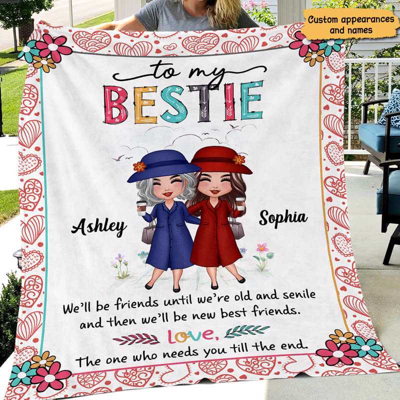 Old Doll Besties Sisters Siblings Floral Personalized Fleece Blanket