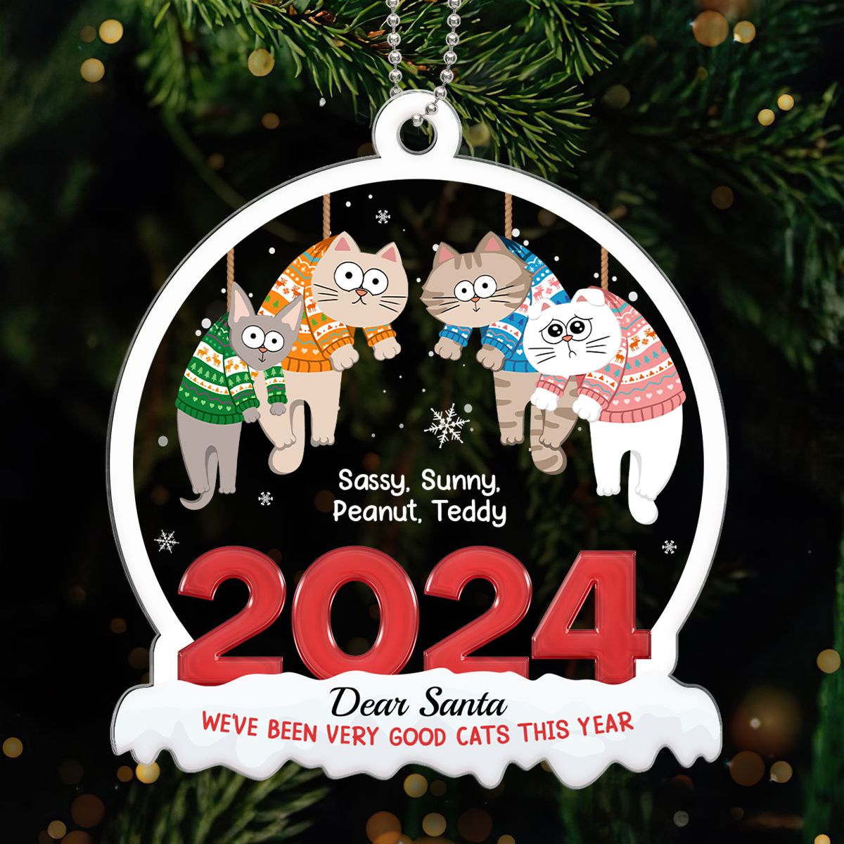 On The Naughty List We Regret Nothing, Hanging Cats Personalized Acrylic Ornament