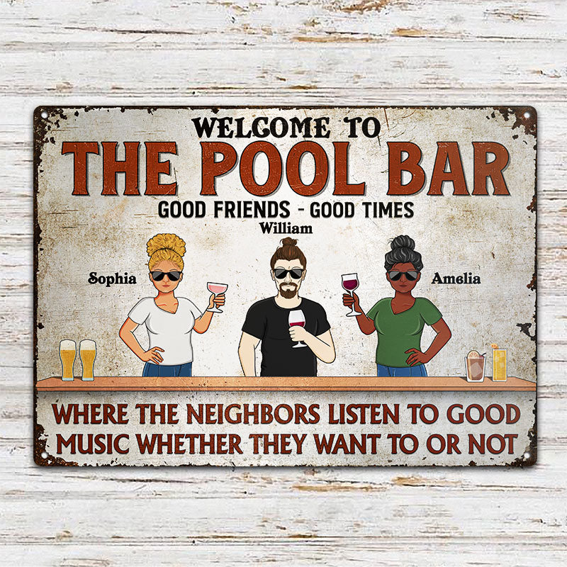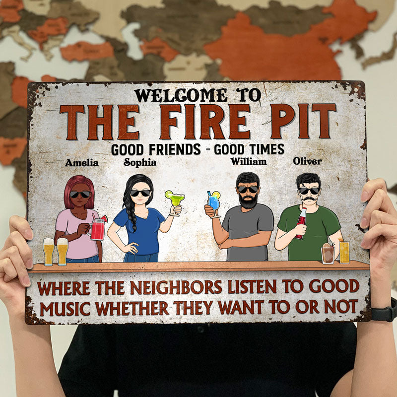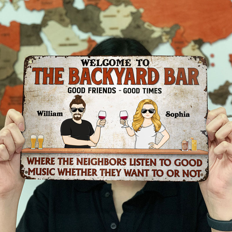 Patio Grilling Where The Neighbors Listen To Good Music Family Best Friends - Backyard Sign - Personalized Custom Classic Metal Signs