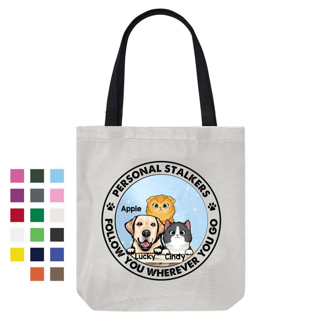 Personal Stalker Peeking Dog Cat Circle Personalized Canvas Bag