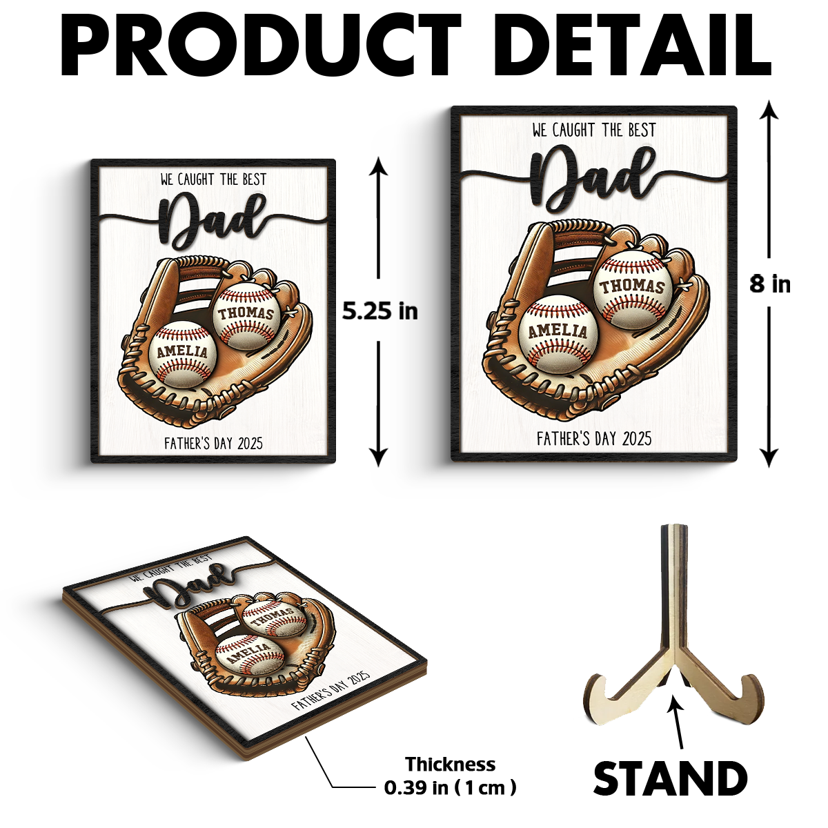 Personalized 2-Layered Wooden Plaque, Father’s Day Gift We Caught The Best Dad Throwing Ball, Custom Kid's Name