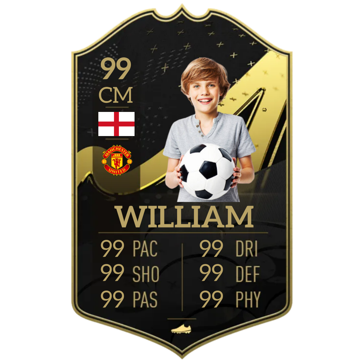 Our personalised football Stats cards can be completely customised with your own photo, name, stats, and even your youth team or local team's badge. If you would like it a certain way let us know. Please only use good-quality images as blurred ones will be blurred.
