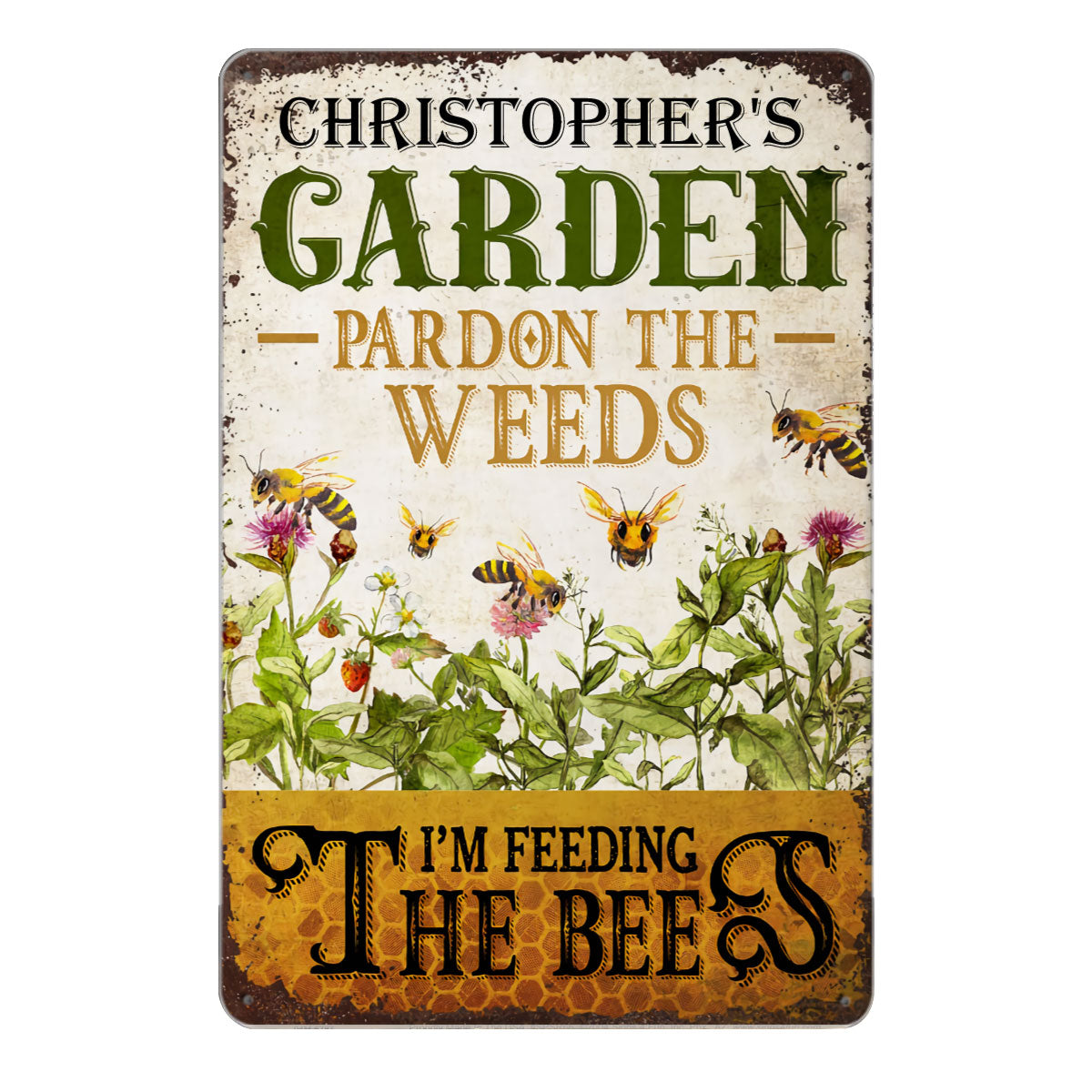 Personalized Bee Garden Pardon The Weeds Customized Classic Metal Signs