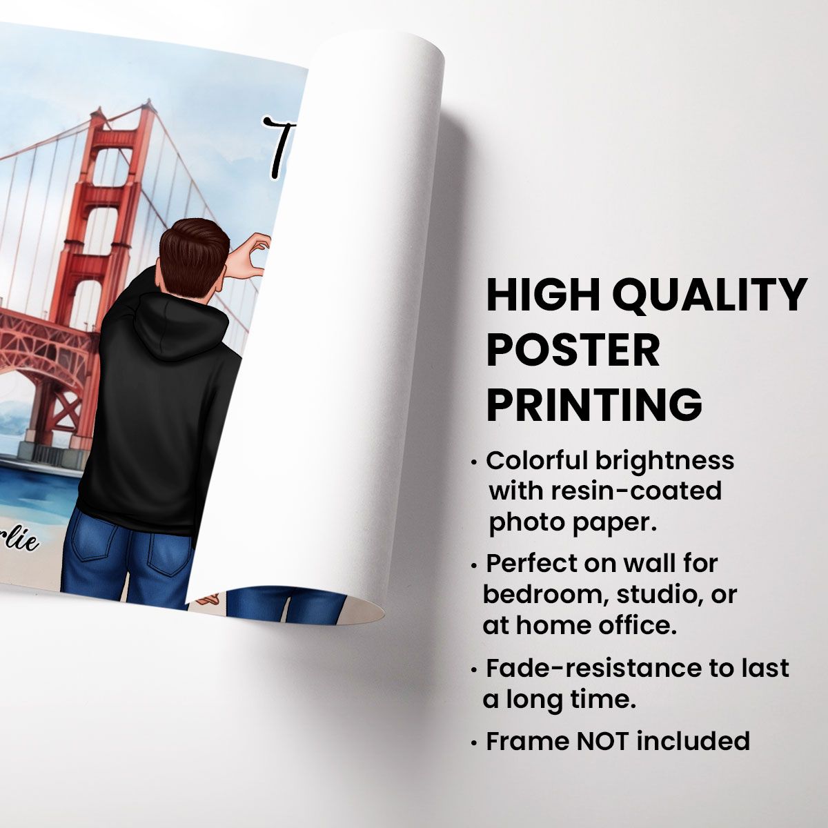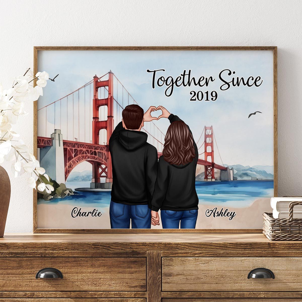 Personalized Couple Bridge Landscape Poster, Valentine's Day Gift, Anniversary Gift for Couples