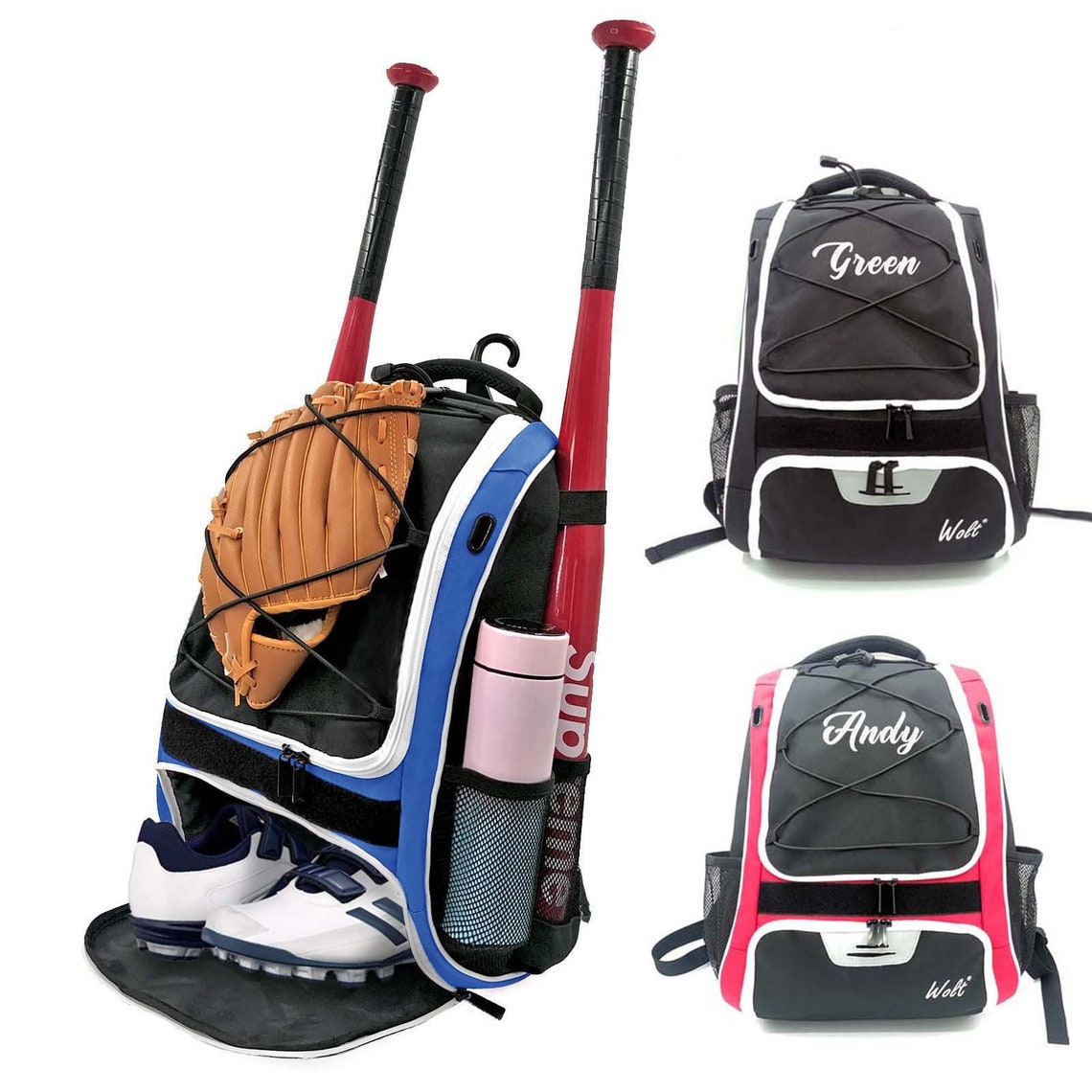 Personalized Custom Name Baseball Backpack - Large Main Compartment for Helmet and Separate Shoes Compartment