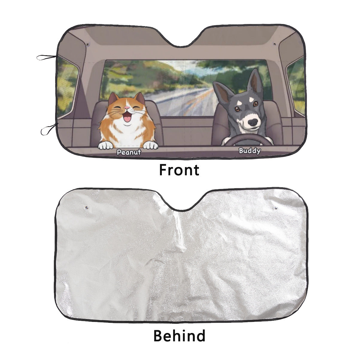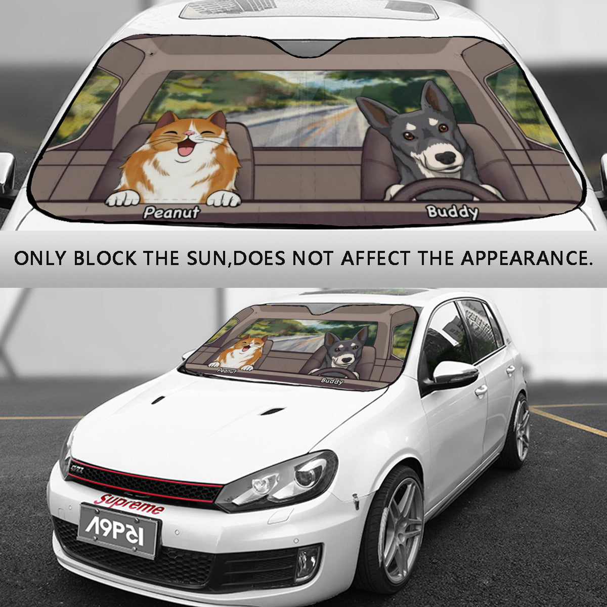 Personalized Dogs And Cats Auto Sunshade Gift For Pet Lovers Car Windshield Sunshades