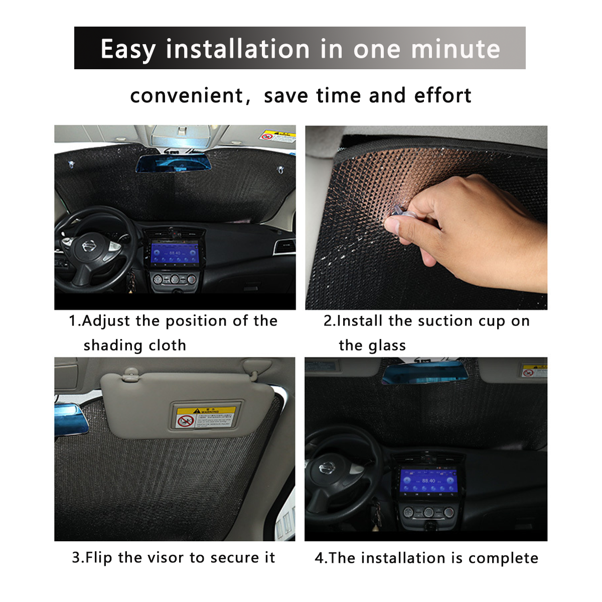- COMFORTABLE COOL INTERIOR - On a typical sunny day, avoid the extra heat and keep your interior cool with our top quality Windshield Sunshade Protector. Reduces interior car temperatures by 30-50 degrees. Blocks damaging UV rays; Keeps car cooler on sunny days