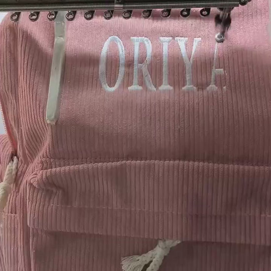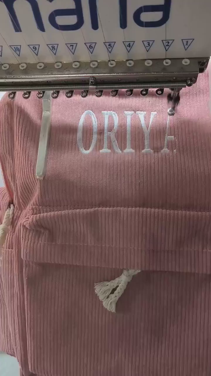 The lettering is embroidered in the backpack, Straps are adjustable.