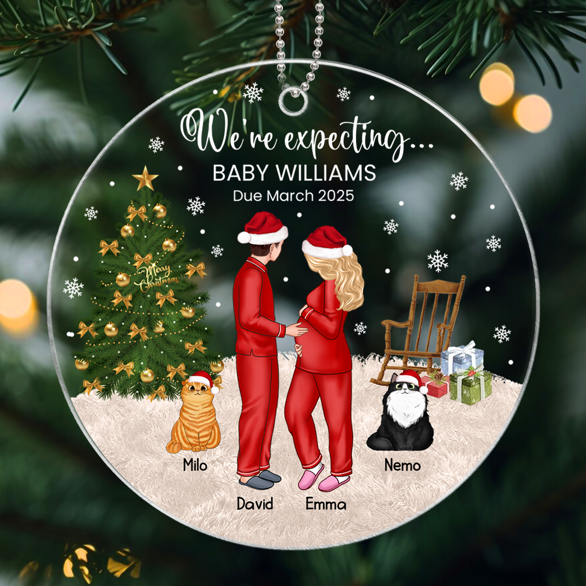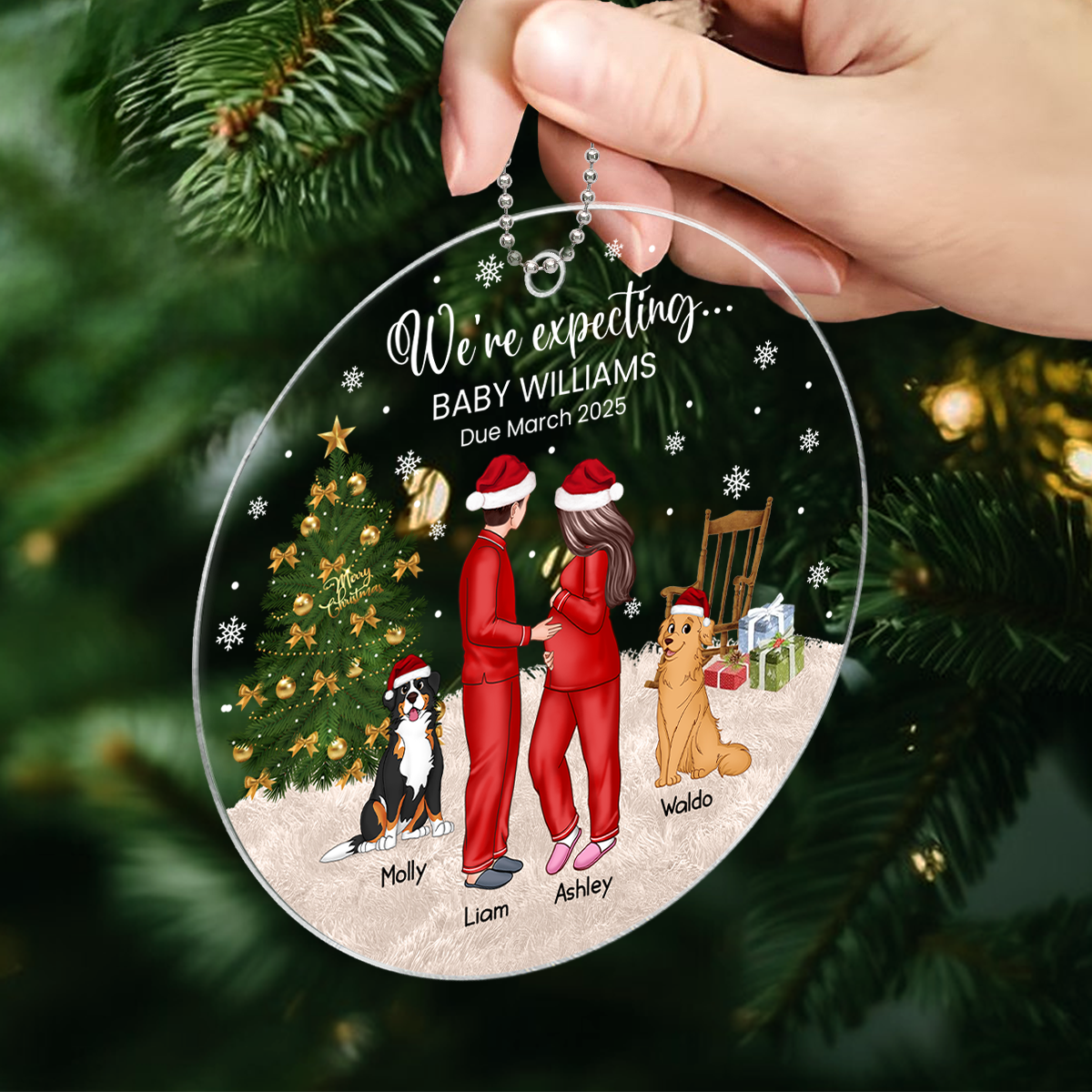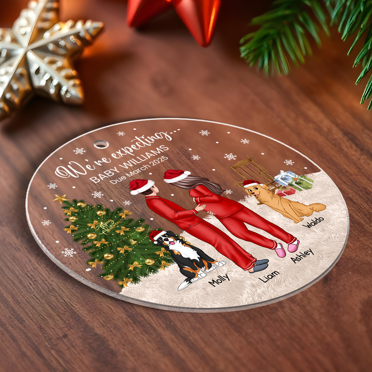 Personalized Expecting Parents Ornament, Pregnancy Christmas Ornament Gifts, Pregnant Couple and Pet Keepsakes