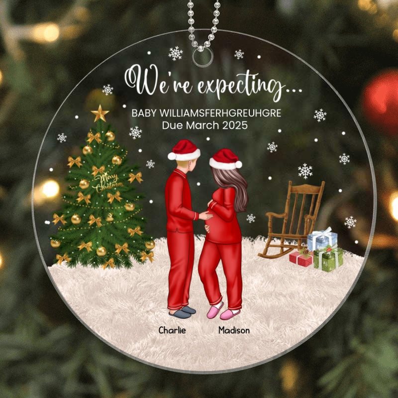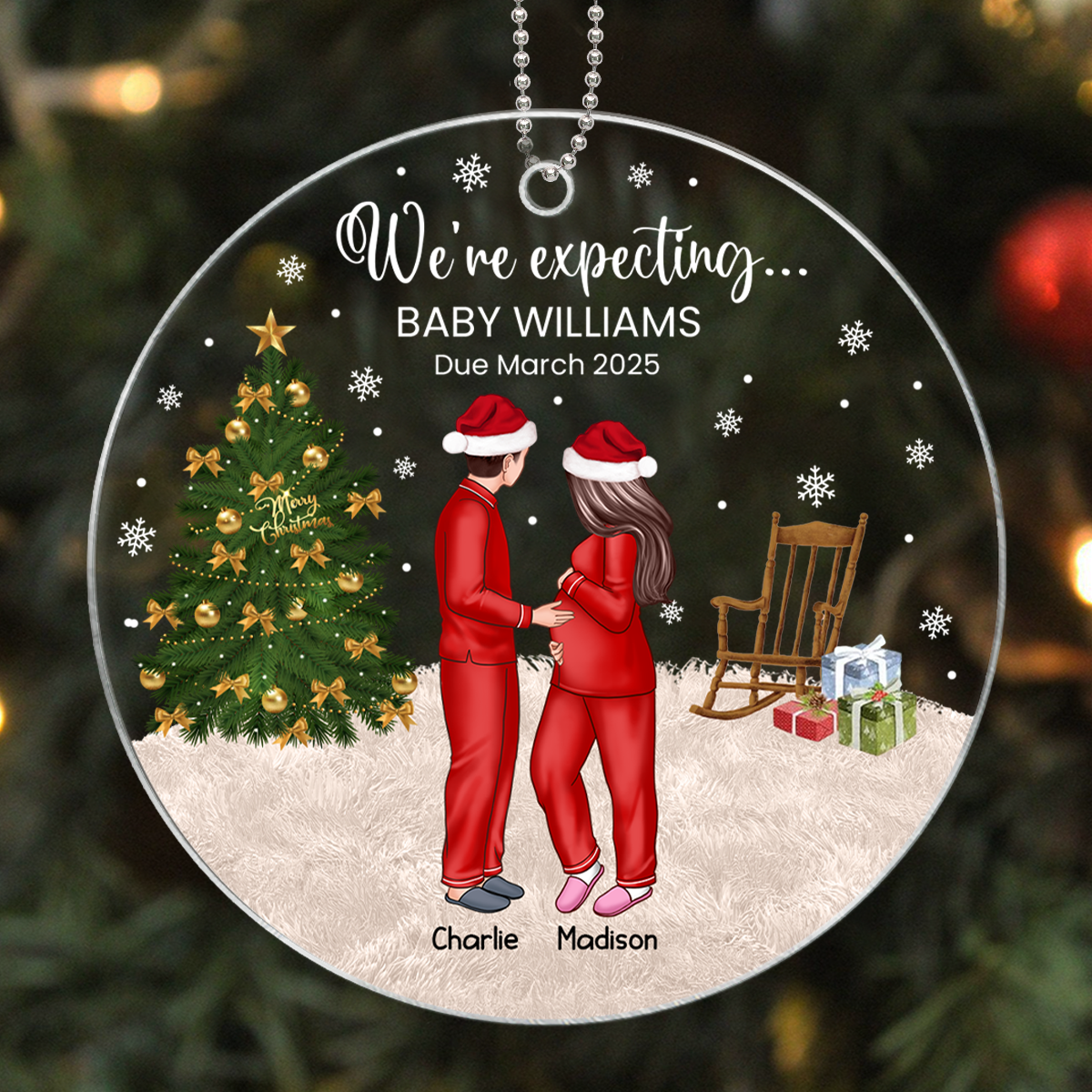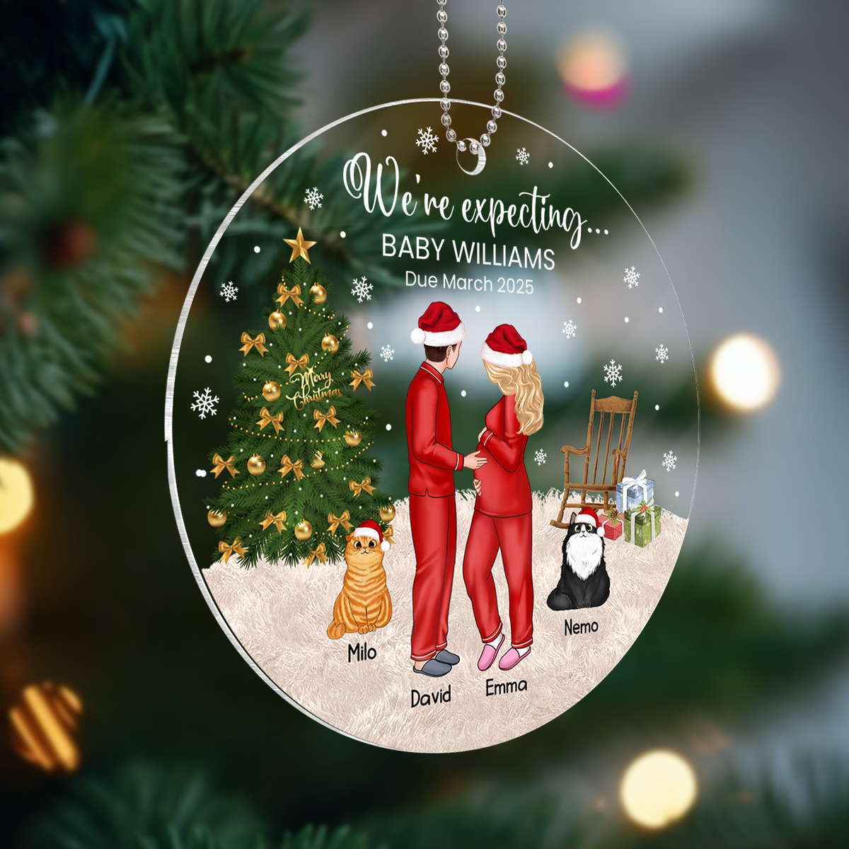 Personalized Expecting Parents Ornament, Pregnancy Christmas Ornament Gifts, Pregnant Couple and Pet Keepsakes