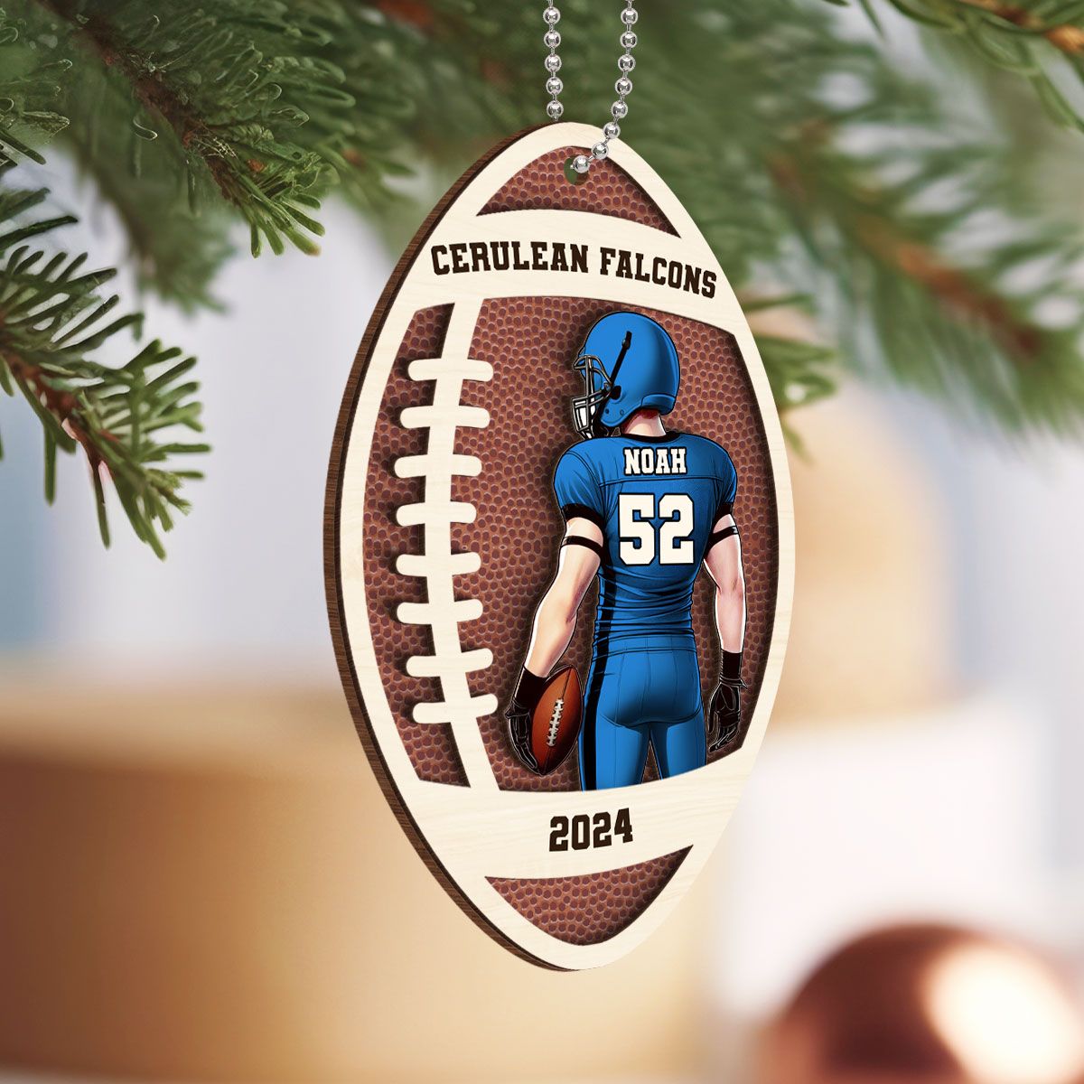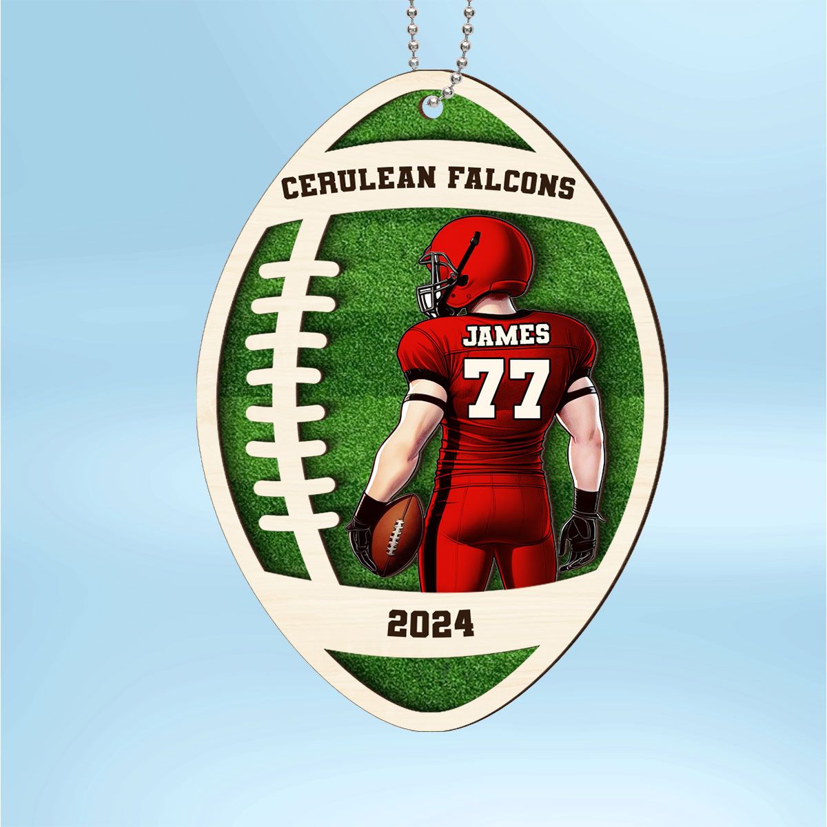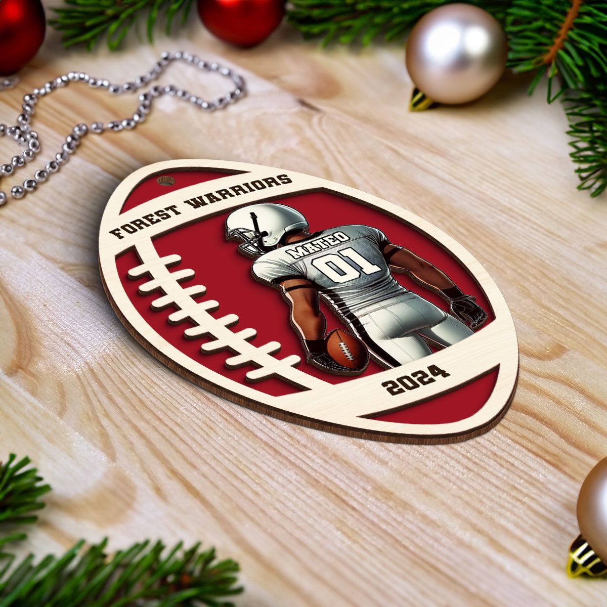 Personalized Football Ornament, 2 Layered Wooden Sports Ornament with Name and Custom Text