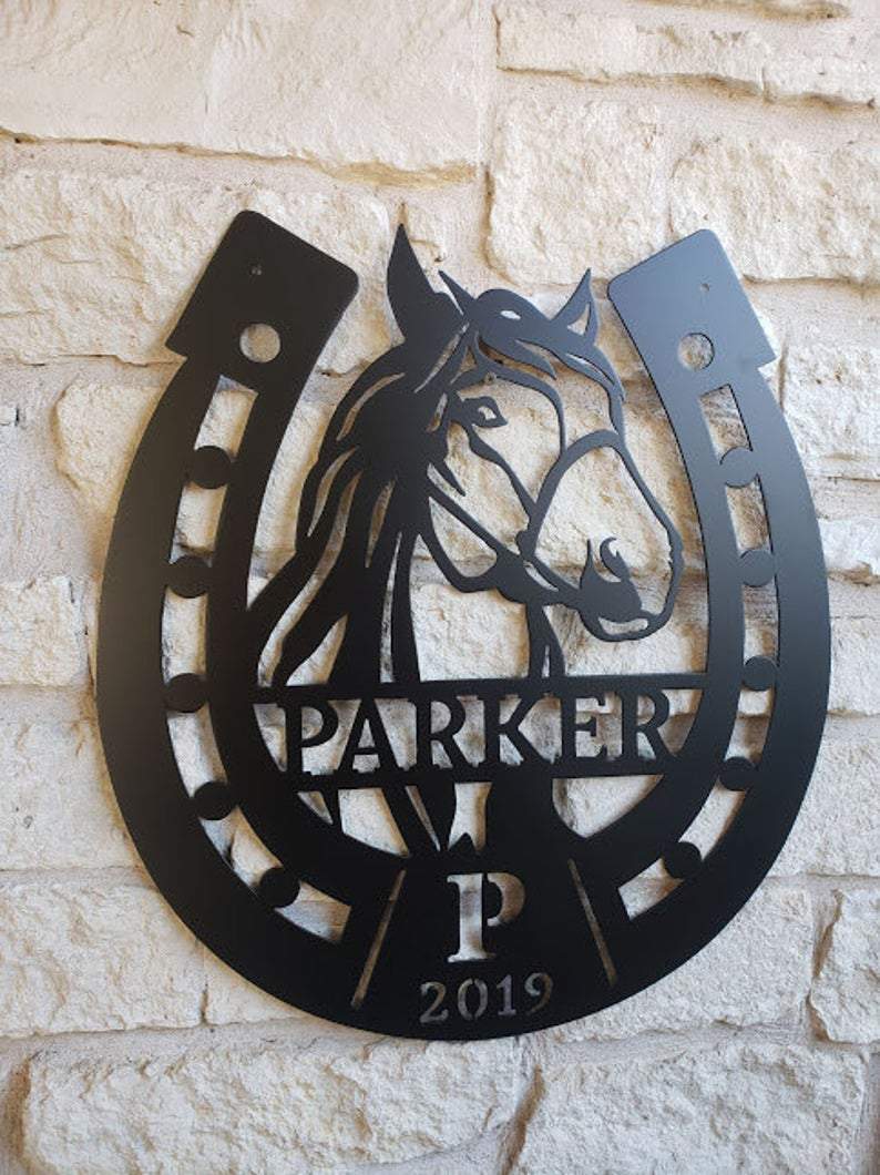 Personalized Horse Metal Sign, Horseshoe Art, Western Decor, Initial Metal Sign