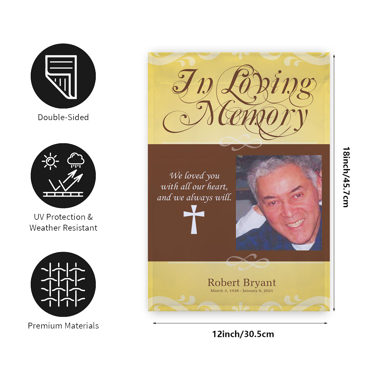 STANDARD SIZE: Vertical banner, standard size Garden Flag - 12*18 inch & House Flag - 28*40 inch.