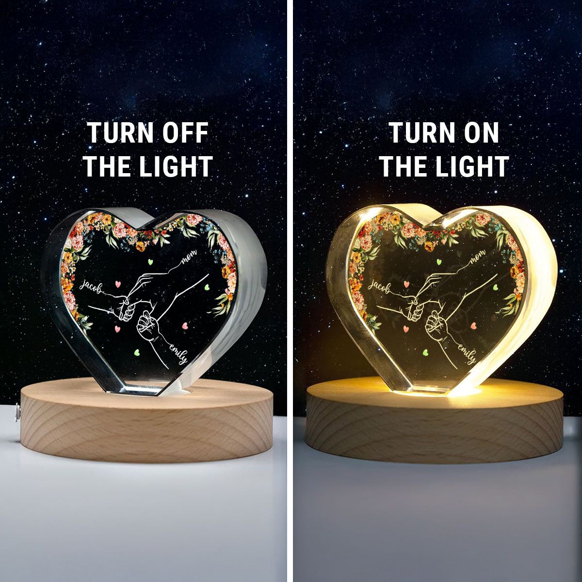 Personalized Name Mom And Kid Hands Premium Crystal Heart LED, A Timeless Treasure for Mom
