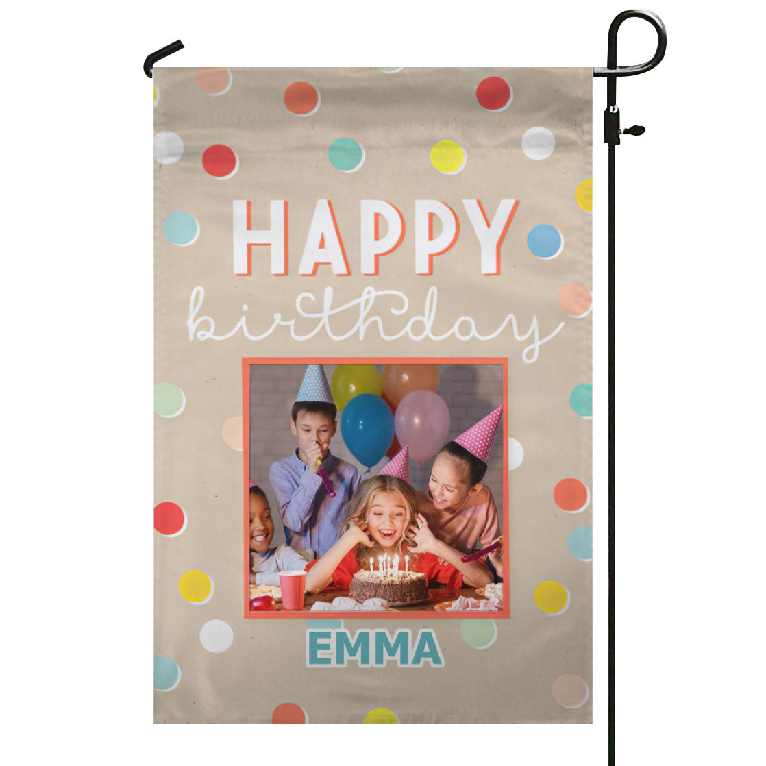 Personalized Photo & Name Birthday Confetti Dots Garden Flag