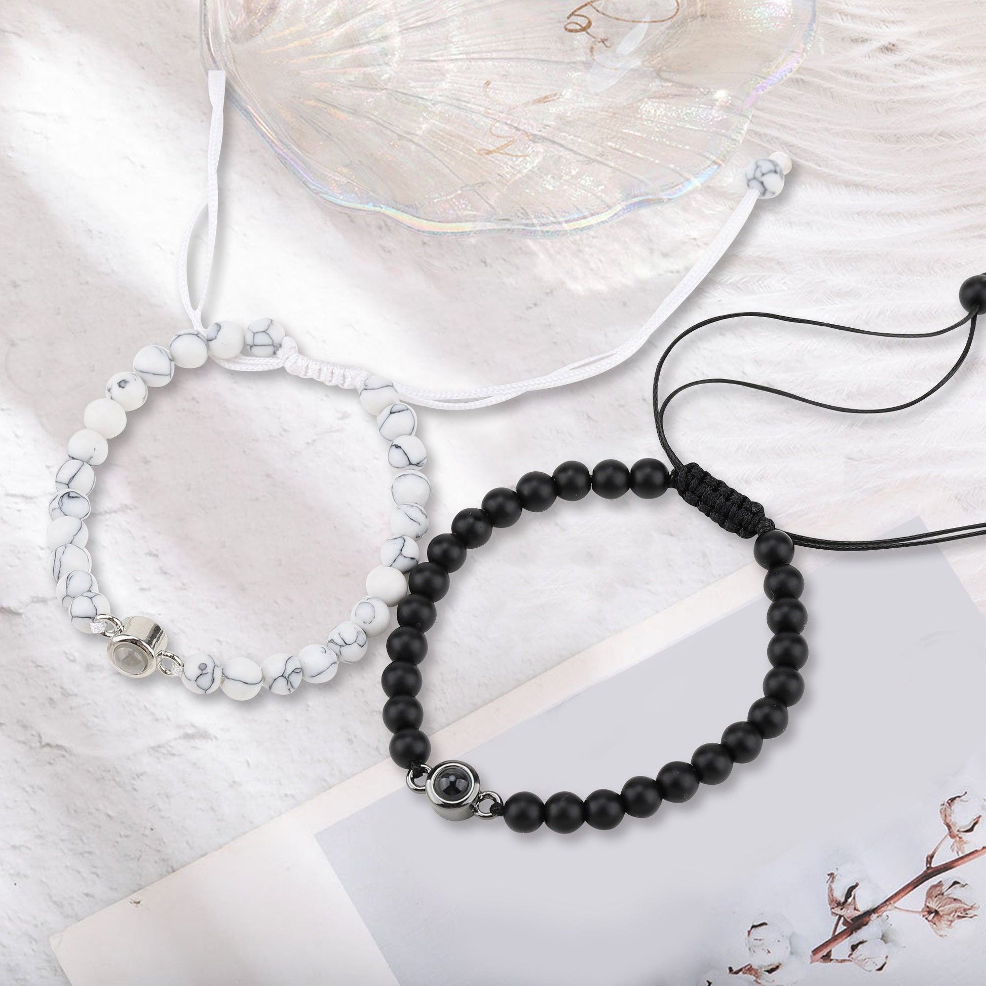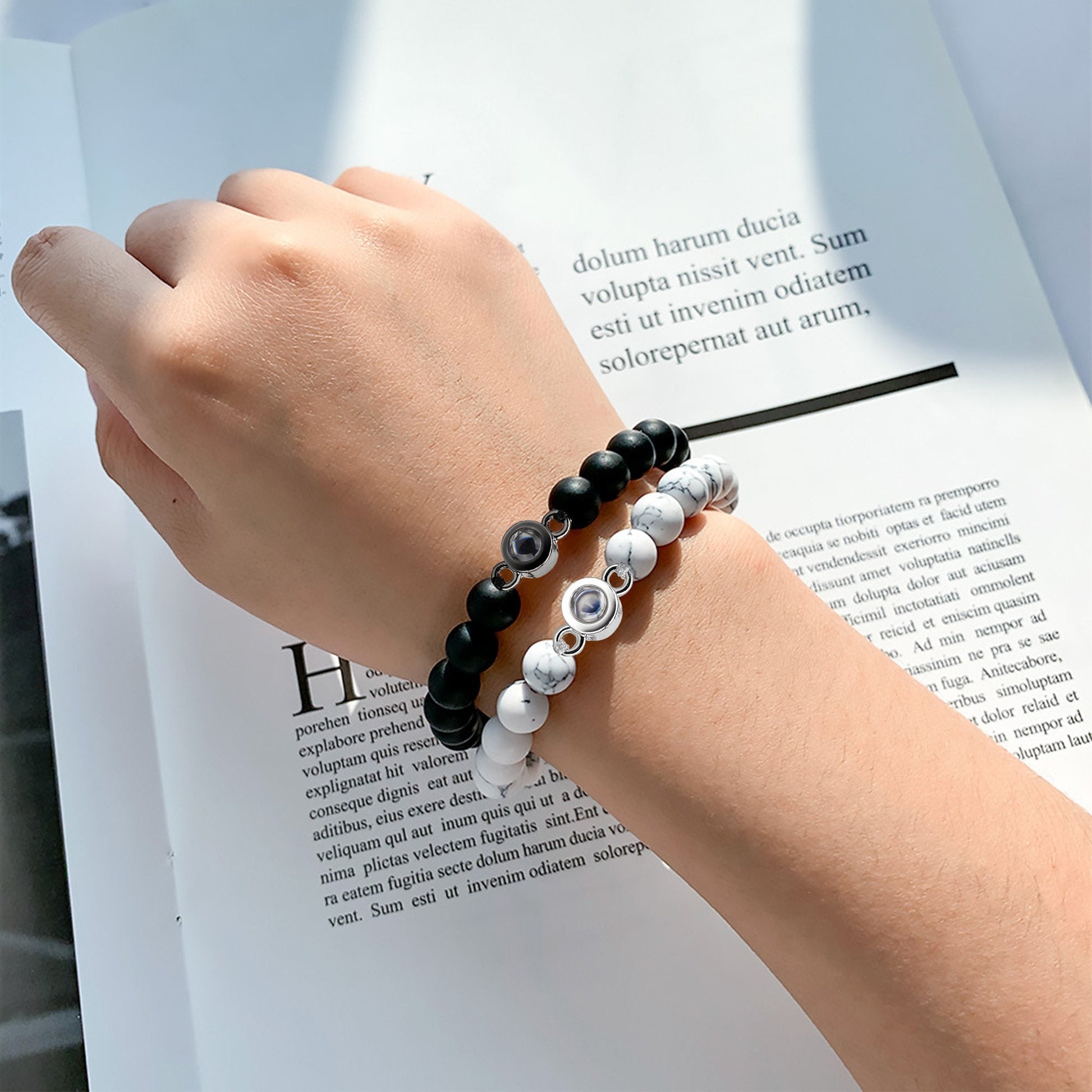 Personalized Upload Photo Natural Stone Projection Bracelet - Birthday, Loving Gift For Couples, Mom, Dad