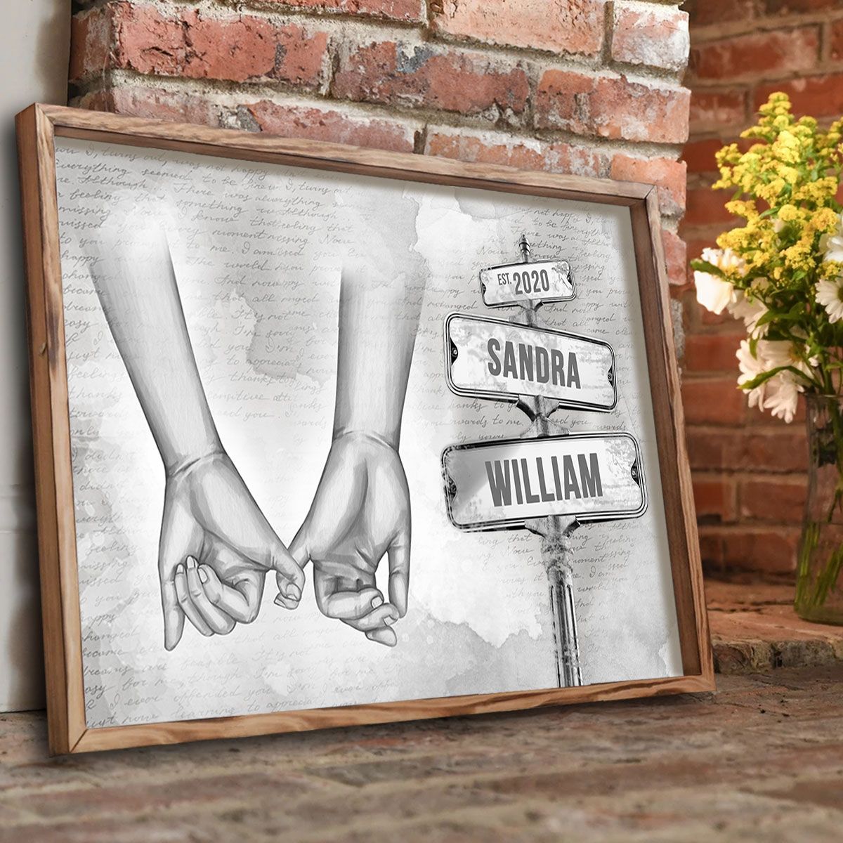 Personalized Vintage Couple Hands Pinky Promise Post Sign Canvas, Valentine's Day Gift Anniversary Gift for Couples