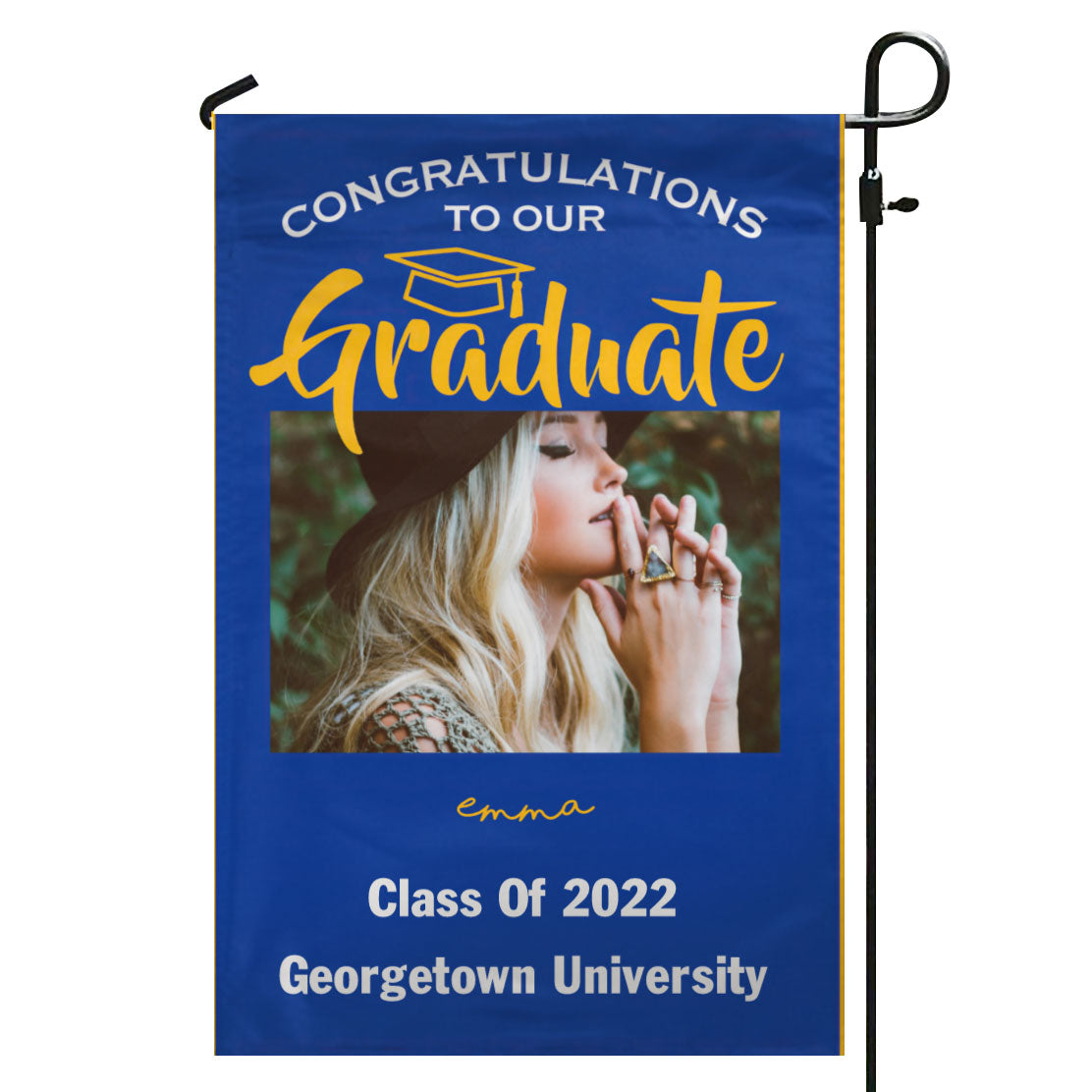 Photo Congrats Royal Blue Gold Yellow Graduation Garden & House Flag