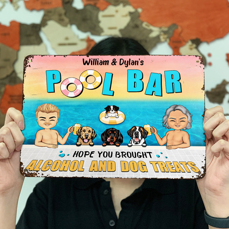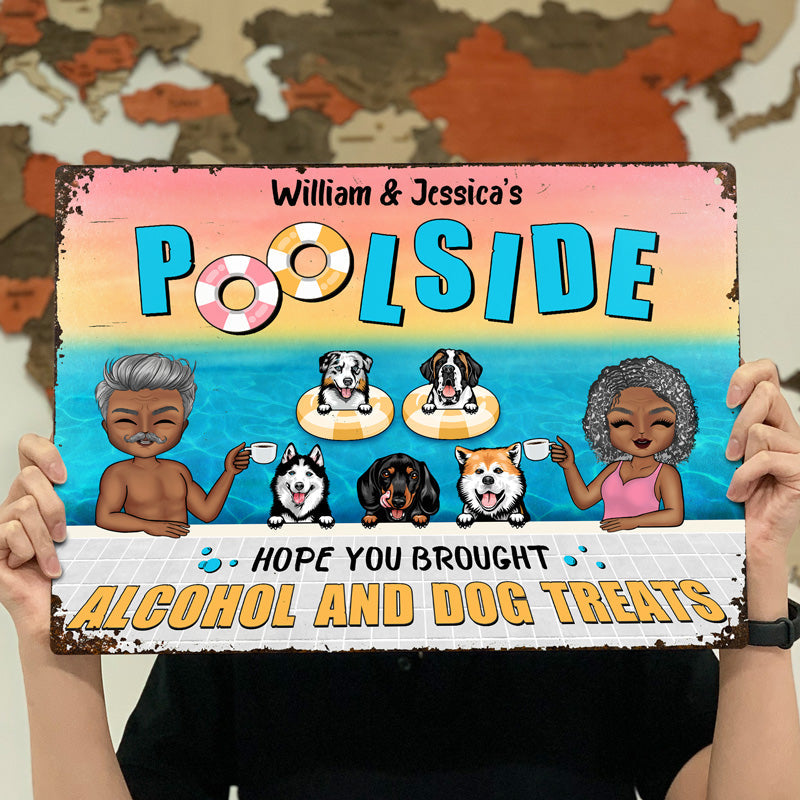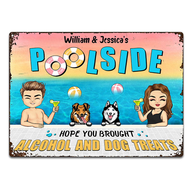Poolside Brought Alcohol & Dog Treats - Gift For Couples - Personalized Custom Classic Metal Signs