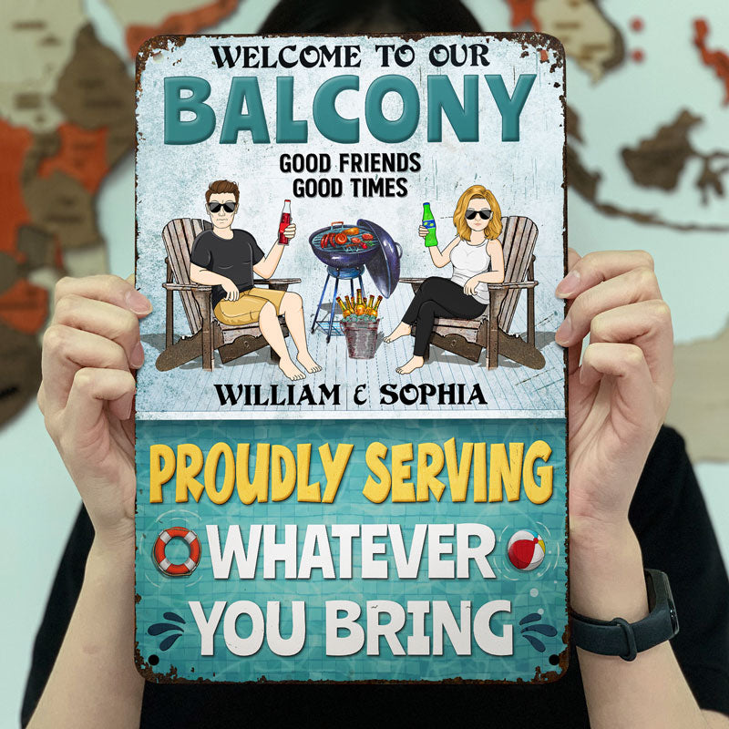 Poolside Grilling Where The Neighbors Listen To Good Music Couple Husband Wife - Backyard Sign - Personalized Custom Classic Metal Signs