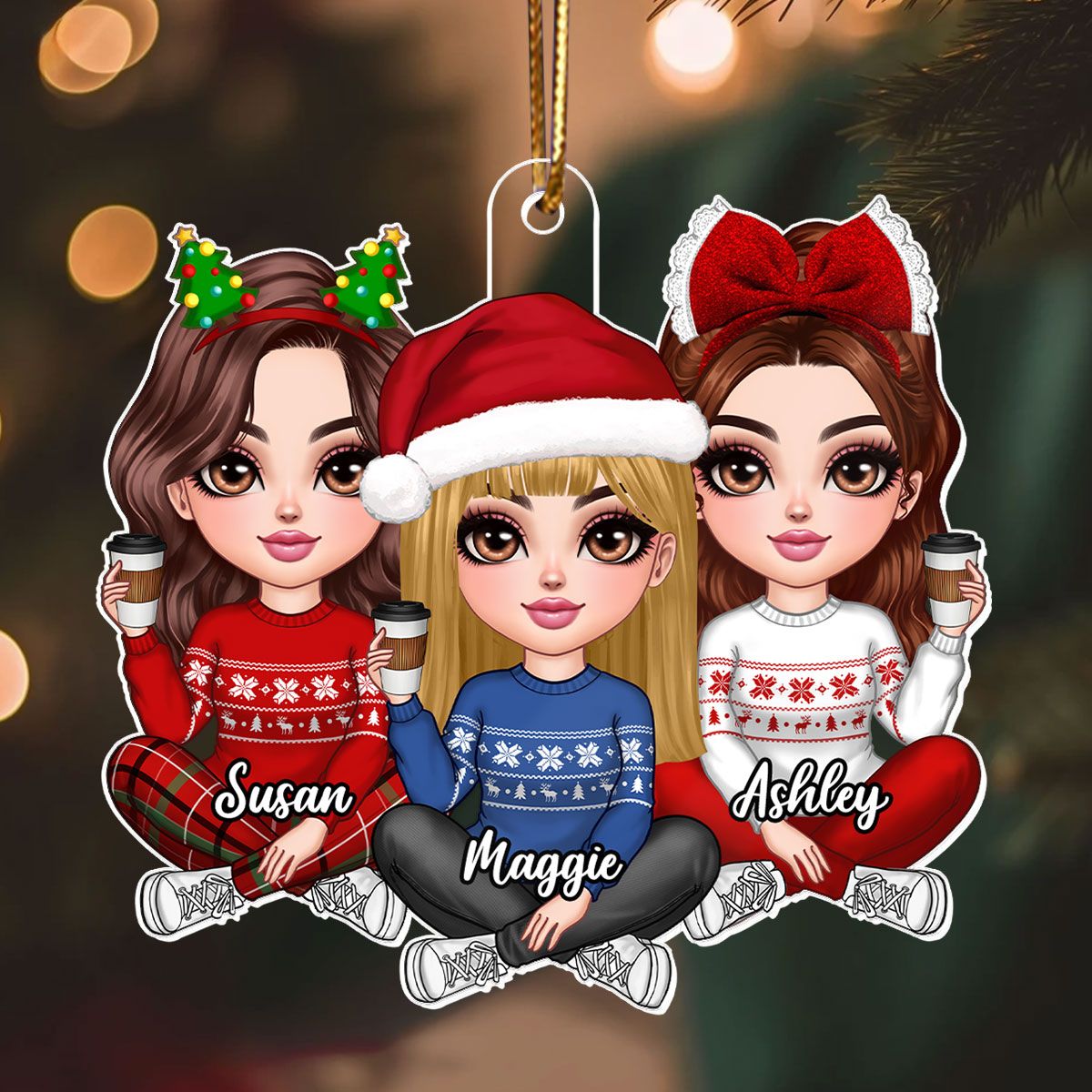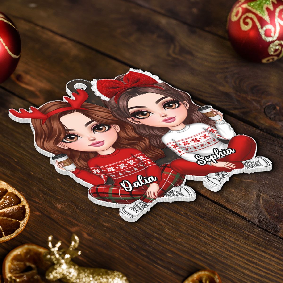 Pretty Christmas Best Friend Besties Sisters BFF Personalized Acrylic Custom Shaped Ornament