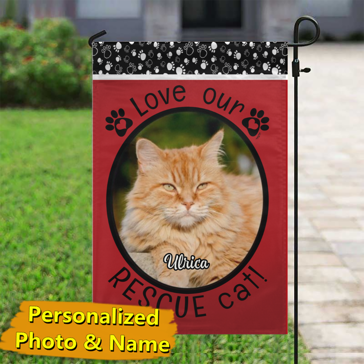 Rescue Cat Red – Personalized Photo & Name – Garden Flag & House Flag