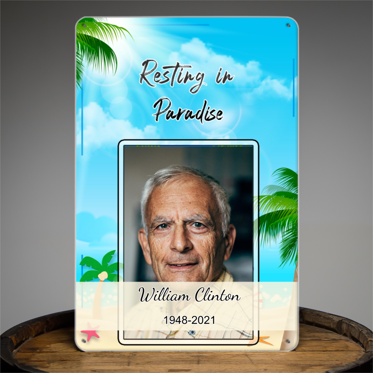 Resting in Paradise Tin Signs - Memorial Tin Signs - Remembrance Tin Signs - Custom Photo Tin Signs - Personalized Yard Sign