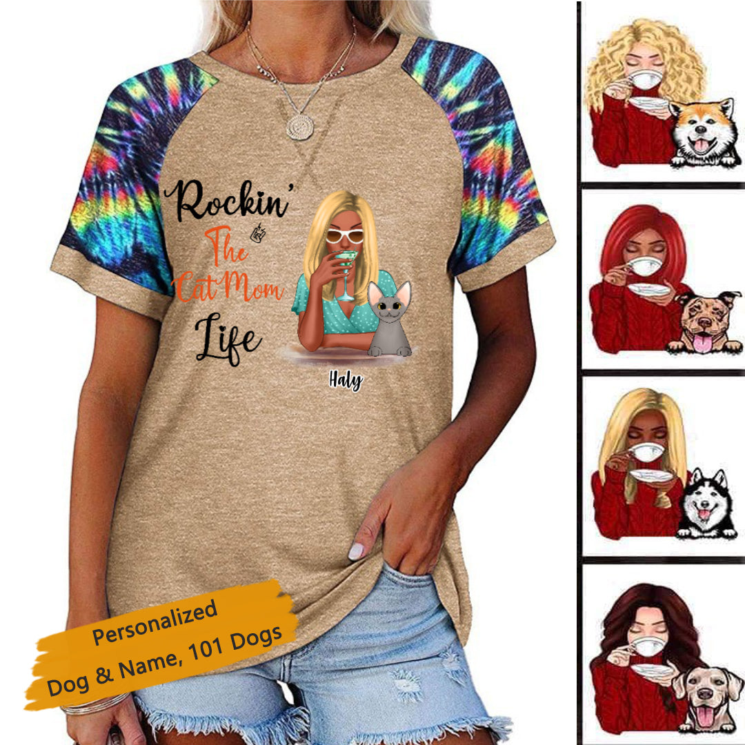 Rockin‘ Cat Mom Life Cocktail Girl Personalized Custom Printed raglan sleeve round neck T-shirt