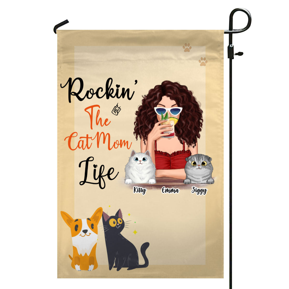 Rockin‘ Cat Mom Life Cocktail Girl Personalized Garden Flag