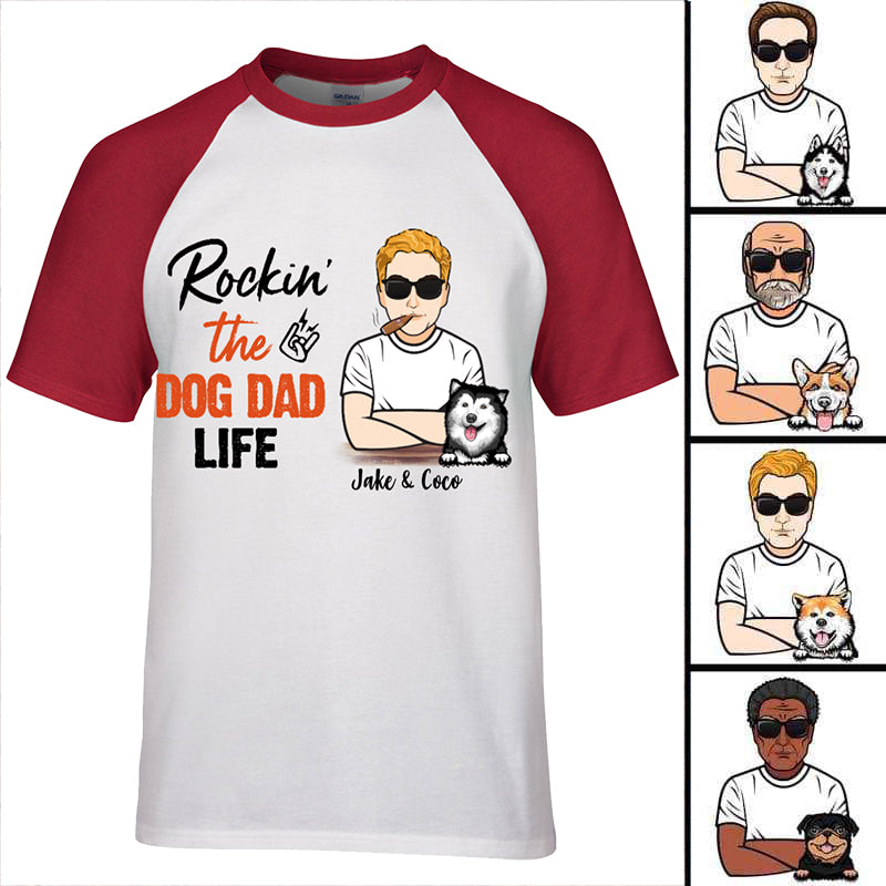 Rockin‘ Dog Dad Life Old Man Personalized Round Neck Baseball Tee