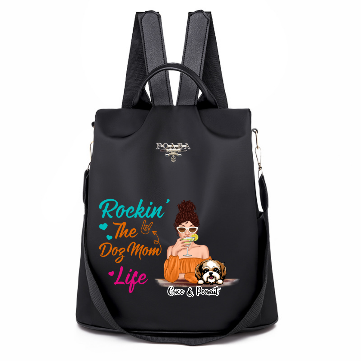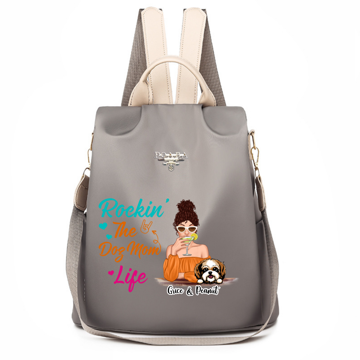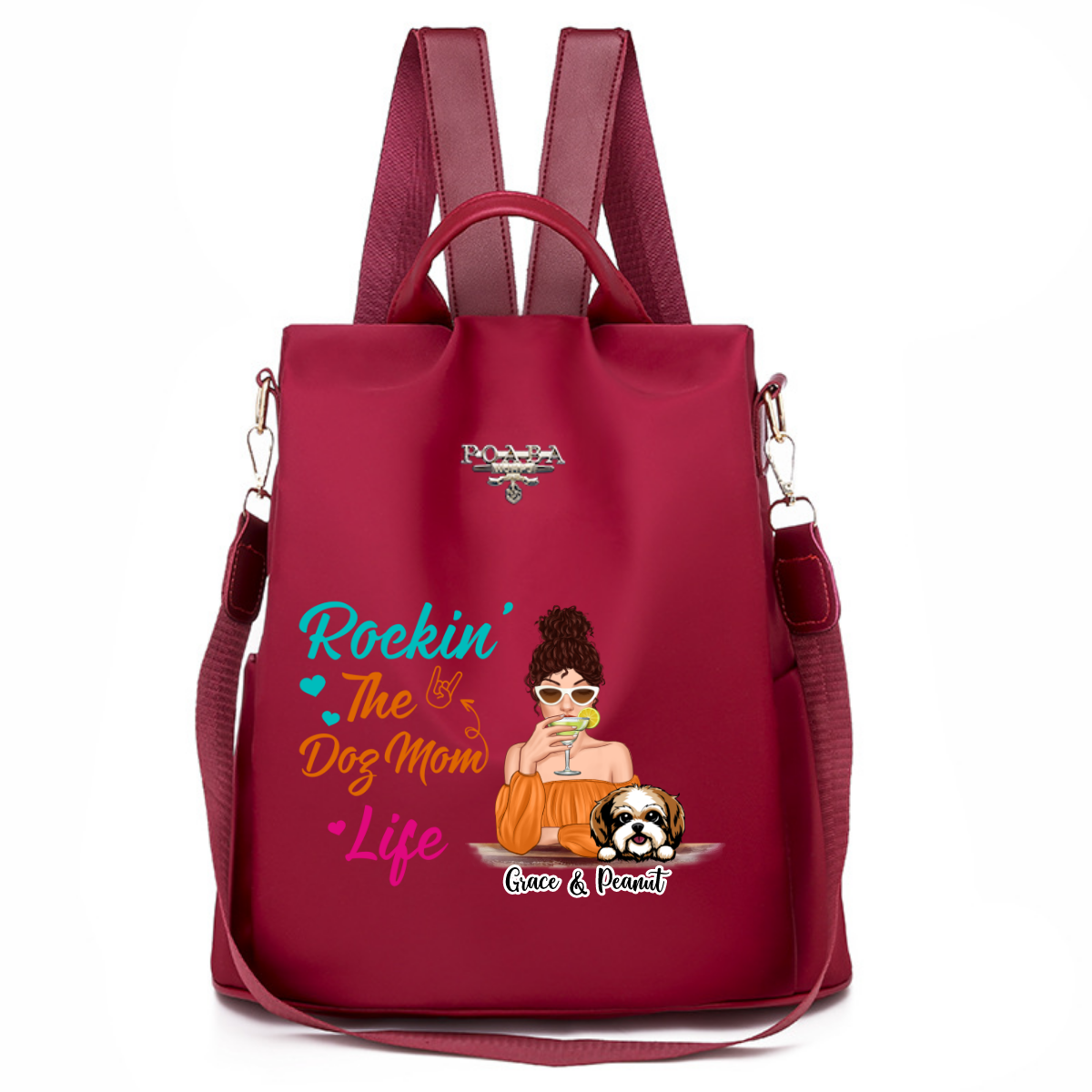Rockin‘ Dog Mom Life Colorful Pattern Personalized Backpack