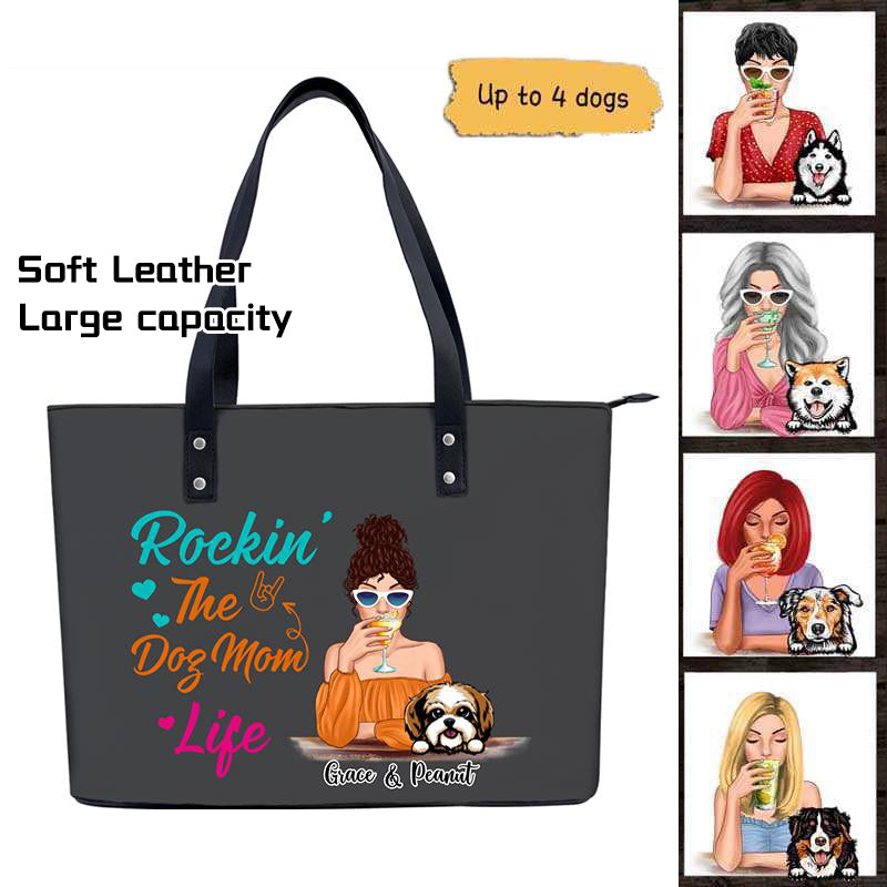Rockin‘ Dog Mom Life Colorful Pattern Personalized Soft Leather Shoulder Bag