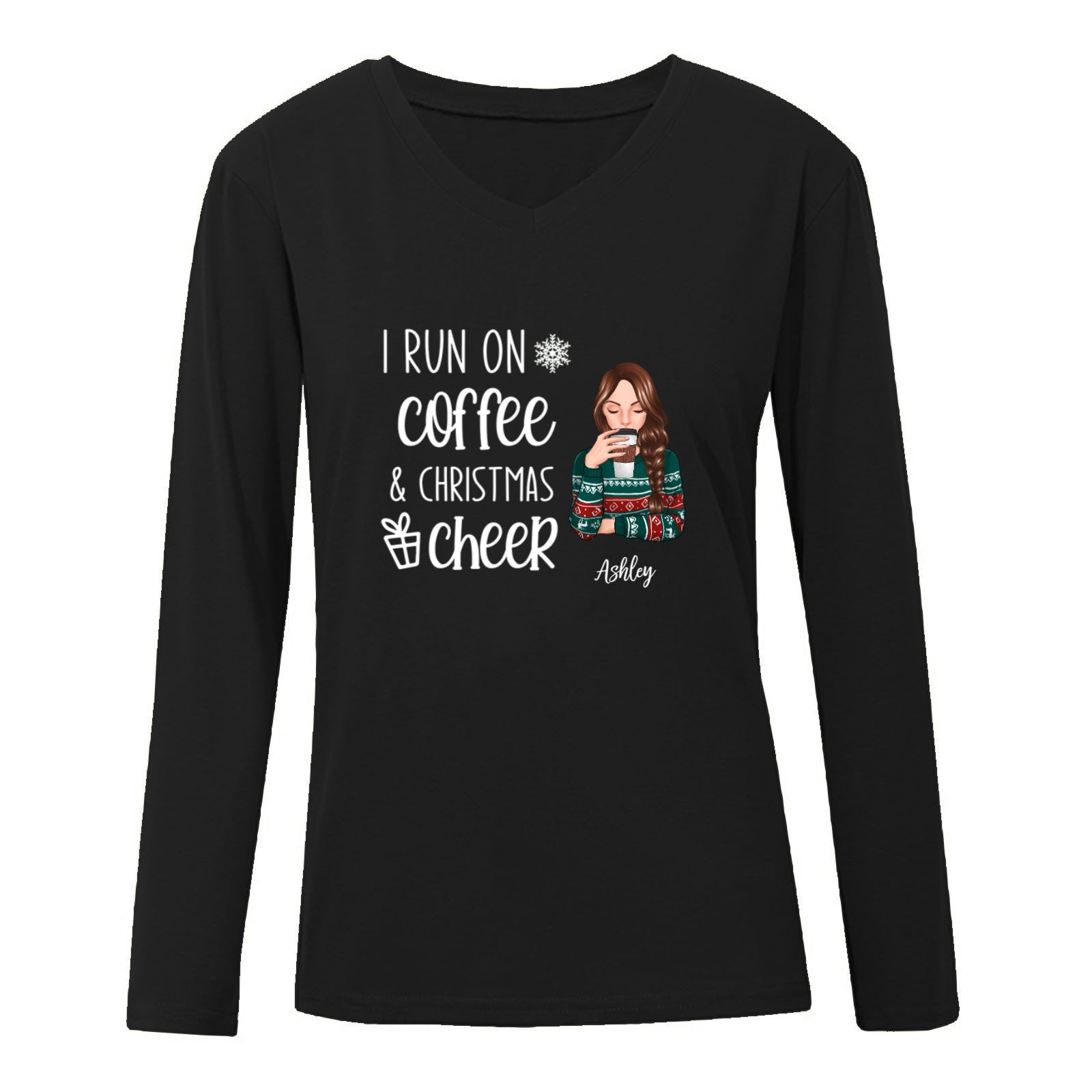 Run On Coffee & Christmas Cheer Personalized Long Sleeve Shirt