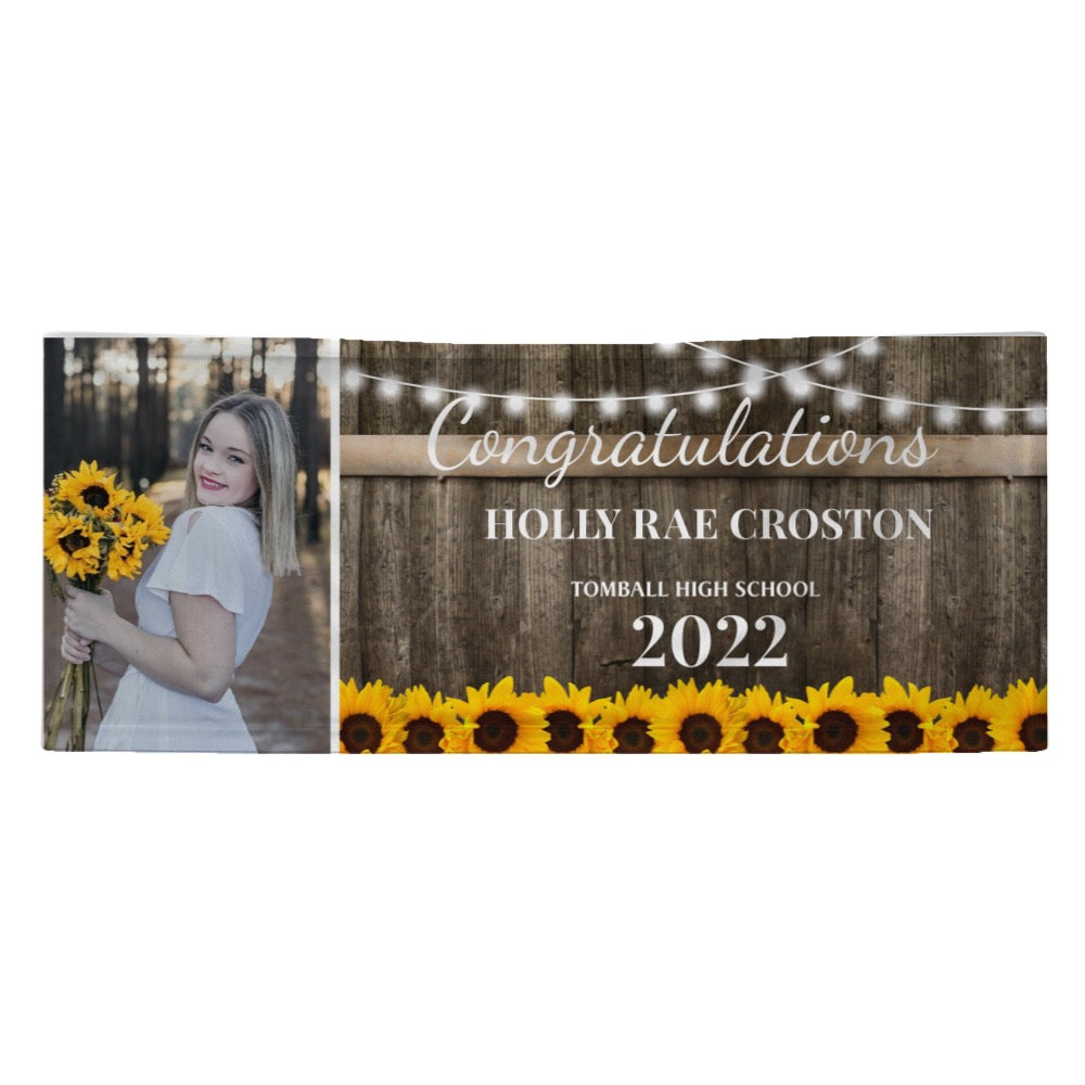 Personalized Name/Photo, Rustic Sunflower 2022 Graduation Photo Banner