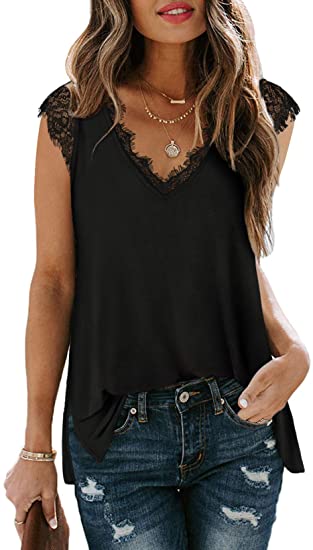 - Design: Sexy V Neck Tank Tops, Sleeveless Tops, Lace Trim, Loose Flowy, Side Split Tunic Tops