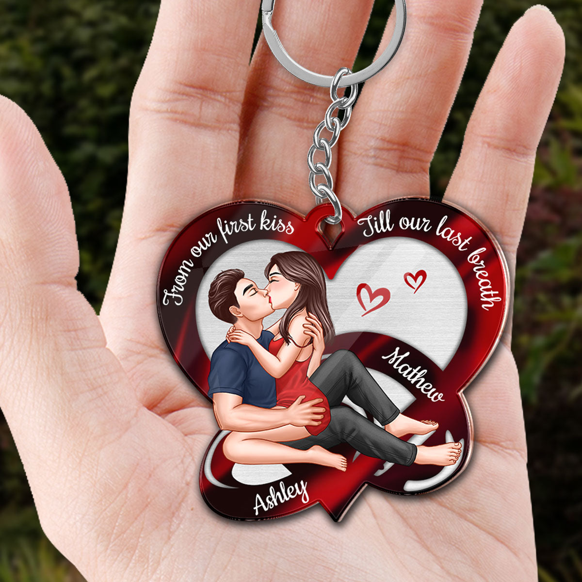 Sexy Couple Kissing Red Heart Rings Personalized Acrylic Keychain