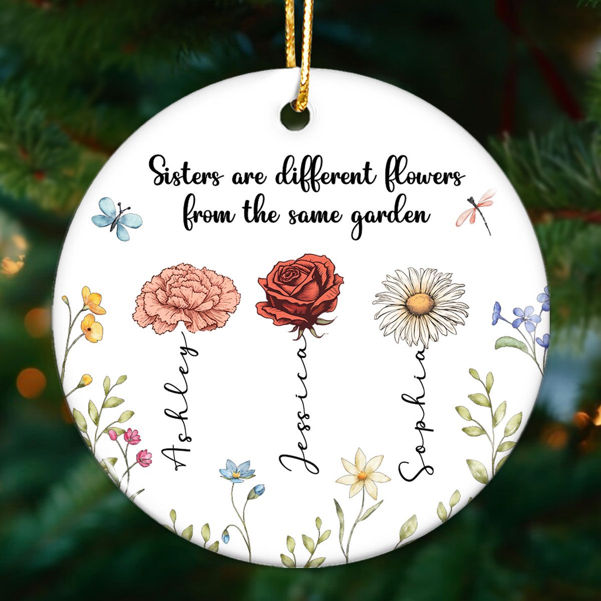 Sisters Are Different Flowers From The Same Garden Personalized Ceramic Ornament, Christmas Gift For Sisters, Siblings, Besties