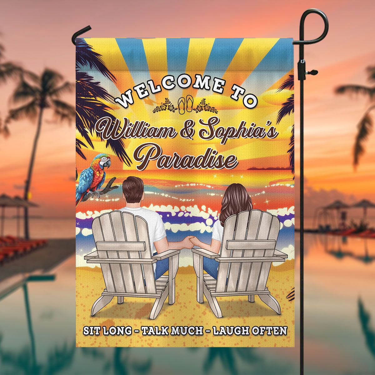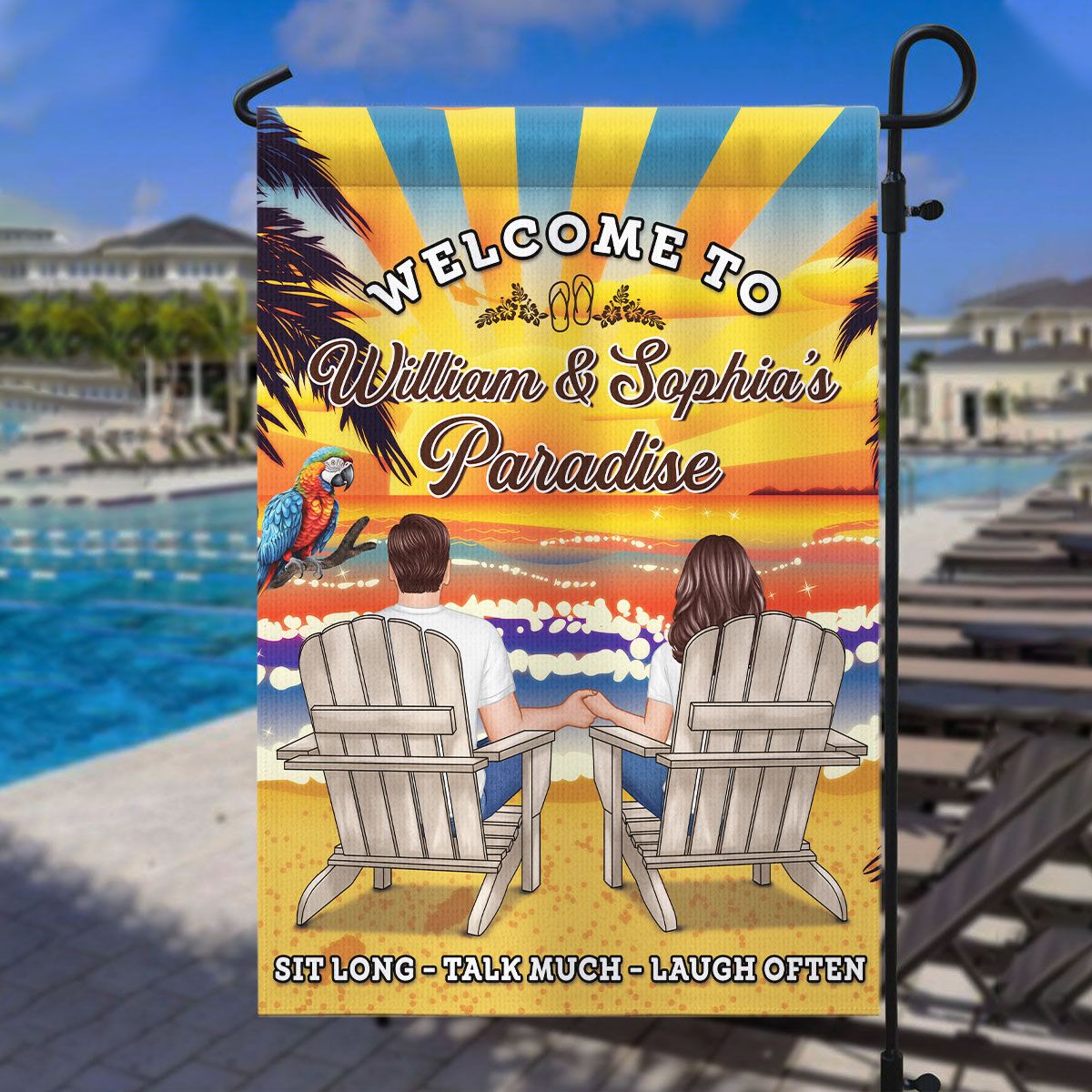 Sit Long Talk Much Bar Couple Sitting Personalized Garden Flag