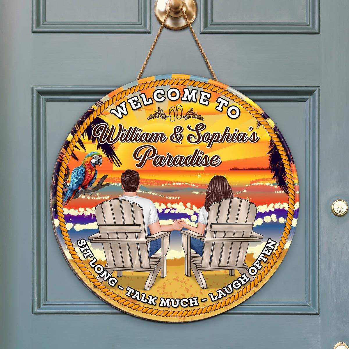 đSit Long Talk Much Bar Couple Sitting Personalized Wood Sign, is a perfect blend of rustic charm and personalized elegance. This beautifully crafted sign is designed to add a unique touch to your poolside, backyard, and doorways, making it an ideal gift or home decor piece.