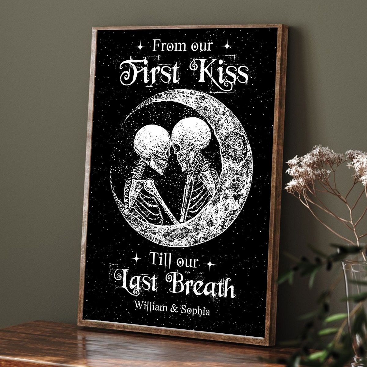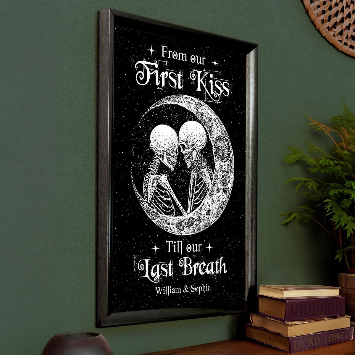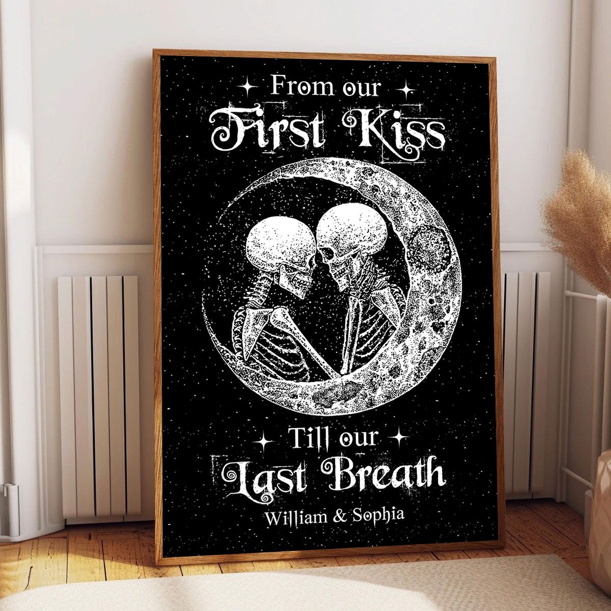 Skeleton Skull Couple I Love You To The Moon And Back Personalized Vertical Poster, Gothic Home Decoration