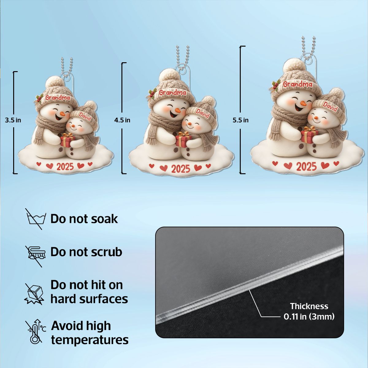 Snowman Grandma Hugging Grandkid Personalized Acrylic Ornament