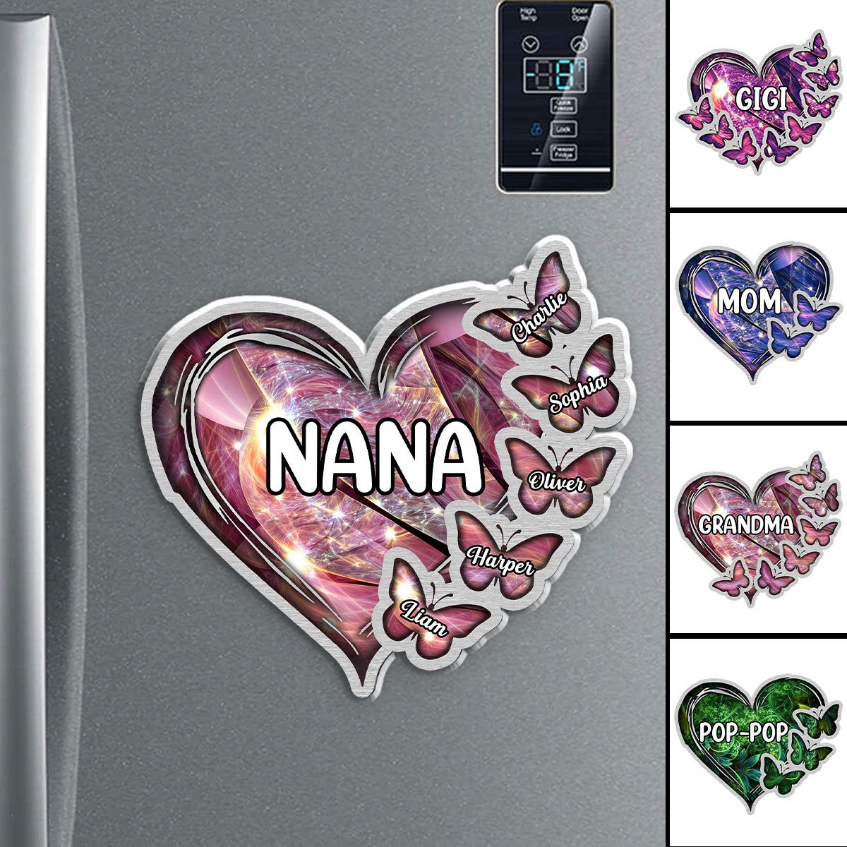 Sparkling Grandma Mom Heart Butterfly Kids Personalized Acrylic Magnet