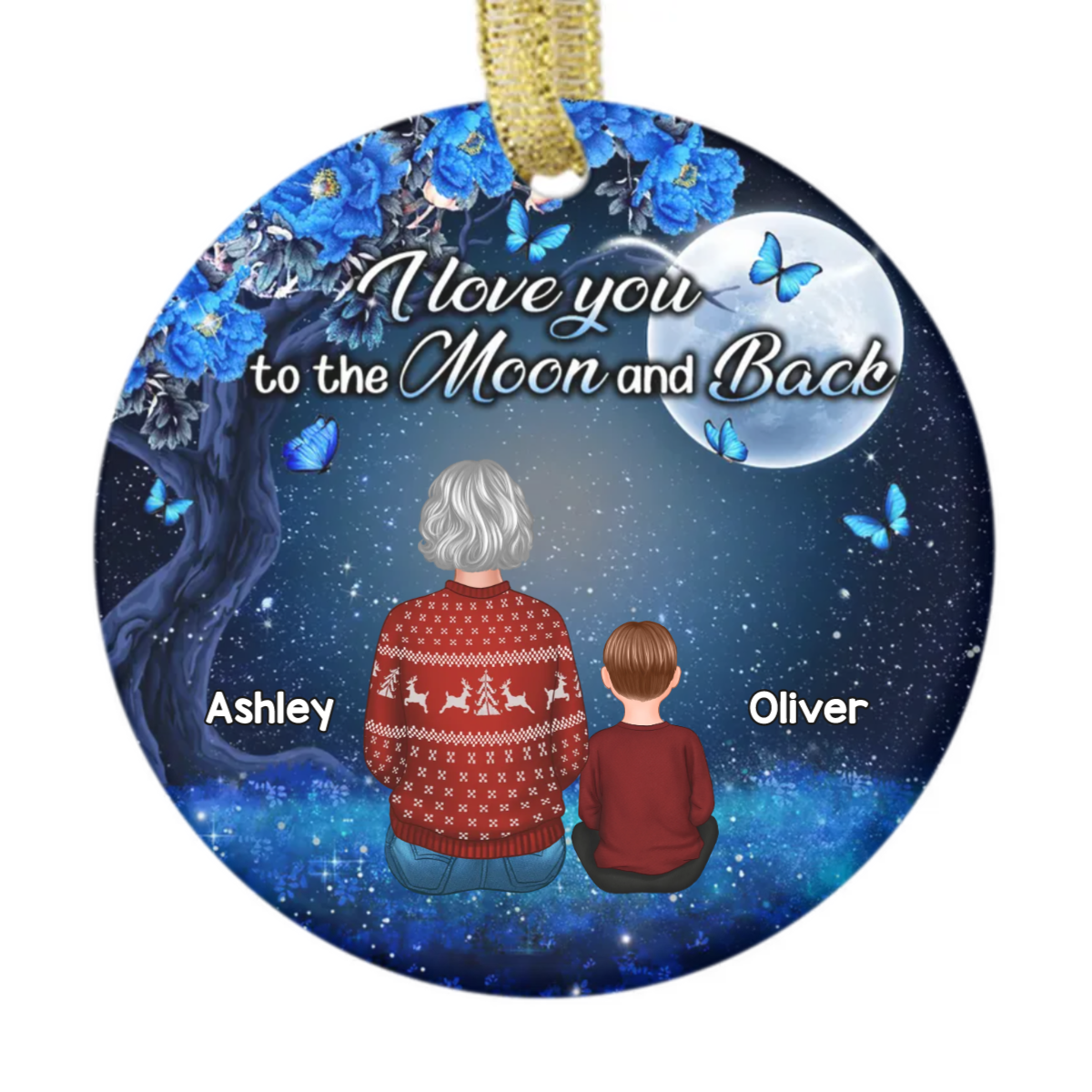 Sparkling Moon Grandma Grandkid Personalized Circle Ornament