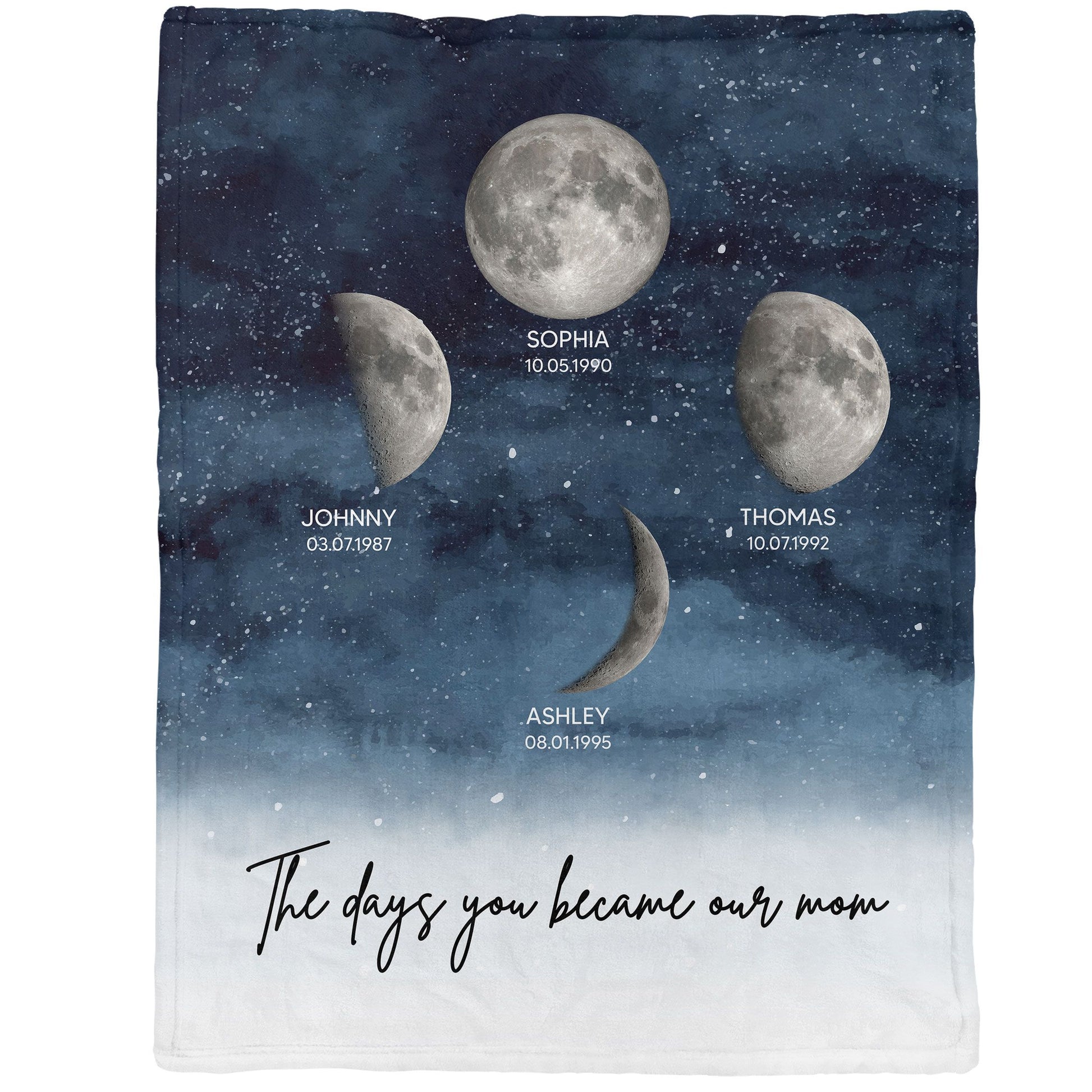 Starry Night Custom Birthday Moon Phase The Day You Became Mom Personalized Blanket, Mother's Day Gift