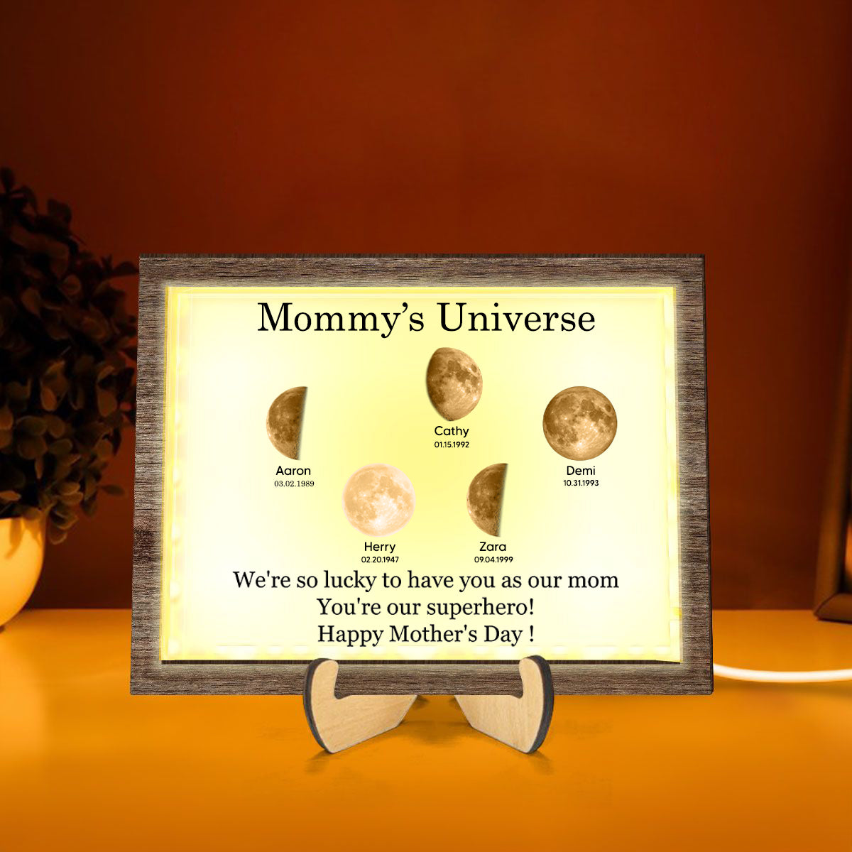 Starry Night The Days You Became My Mom Custom Birthday Moon Phase Personalized 2-Layered Wooden Frame with LED, Mother's Day Gift, Father's Day Gift