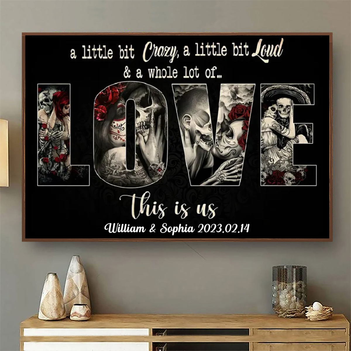Sugar Skull Couple Whole Lot Of Love - Gift For Couples - Personalized Custom Horizontal Poster